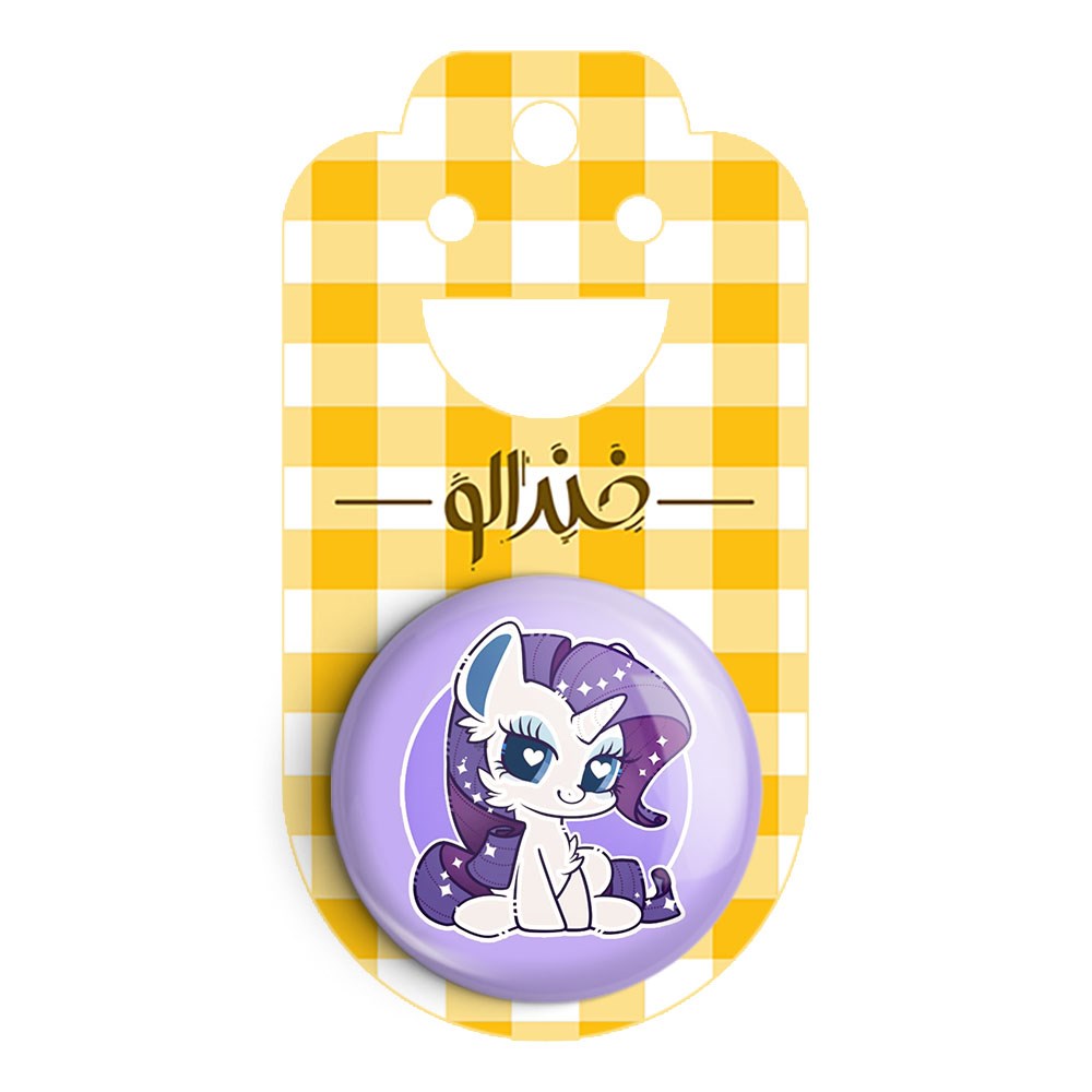 پیکسل 44 میلی متری اسب پونی خندالو با روکش سلفون حرارتی مات مخملی ضدخش و قطعه پشتی رنگی تولید شده است.پلاستیکی پشت پیکسل با سوزن یک تکه ثابت و بدون لغزش و جا به جایی، ایستایی بسیار بهتری نسبت به پشتی فلزی پیکسل دارند که این مهم در تولید این محصول نیز رعایت شده است.