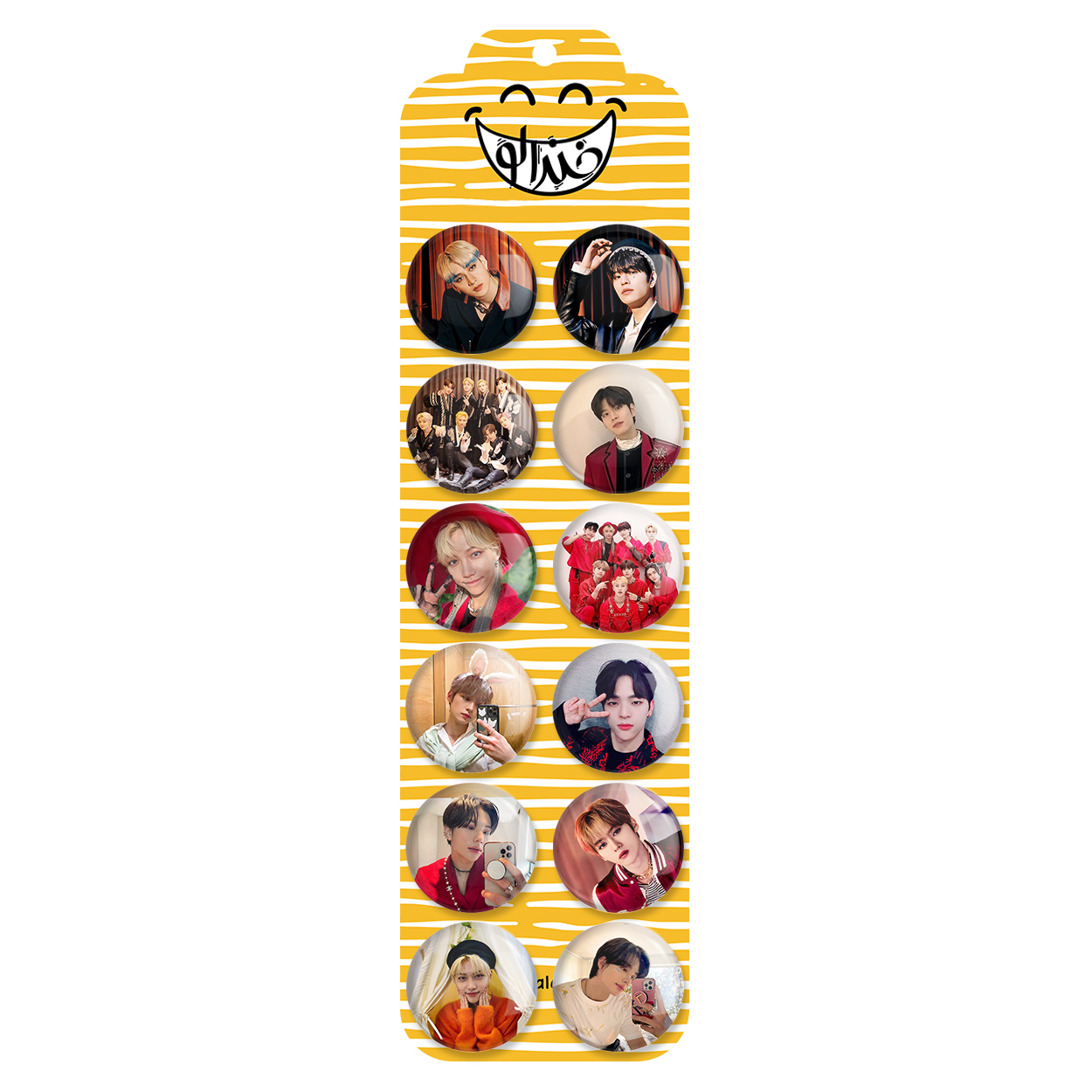 پک 12 عددی پیکسل خندالو طرح استری کیدز Stary kids با روکش سلفون حرارتی براق ضدخش و قطعه پشتی رنگی تولید شده است. قطعات پشتی از میان 6 رنگ سفید، مشکی، صورتی، زرد، آبی و قرمز که با توجه به نوع و رنگبندی طرح روی پیکسل انتخاب شده اند تولید می شود و در هر بسته بندی مطابق عکس محصول می باشد. قطعات پلاستیکی پشت پیکسل با سوزن یک تکه ثابت و بدون لغزش و جا به جایی، ایستایی بسیار بهتری نسبت به پشتی فلزی پیکسل دارند که این مهم در تولید این محصول نیز رعایت شده است.