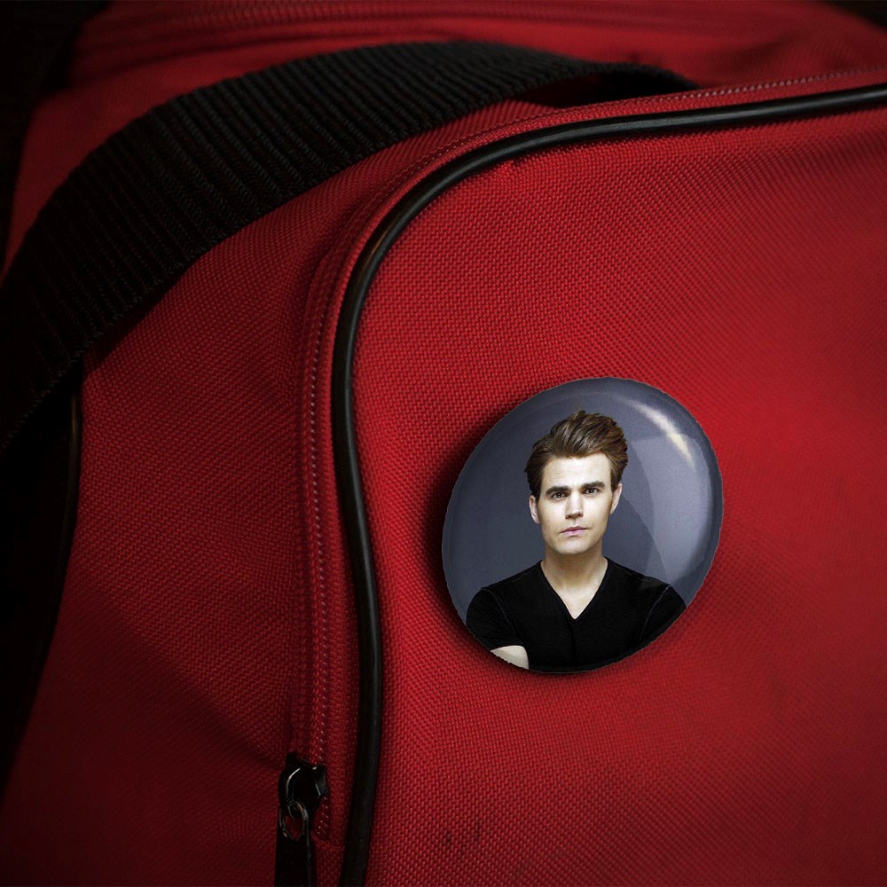 پیکسل 44 میلی متری استفان سالواتوره خاطرات یک خون آشام The Vampire Diaries خندالو با روکش سلفون حرارتی مات مخملی ضدخش و قطعه پشتی رنگی تولید شده است.پلاستیکی پشت پیکسل با سوزن یک تکه ثابت و بدون لغزش و جا به جایی، ایستایی بسیار بهتری نسبت به پشتی فلزی پیکسل دارند که این مهم در تولید این محصول نیز رعایت شده است.