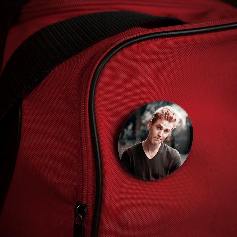 پیکسل 44 میلی متری استفان سالواتوره خاطرات یک خون آشام The Vampire Diaries خندالو با روکش سلفون حرارتی مات مخملی ضدخش و قطعه پشتی رنگی تولید شده است.پلاستیکی پشت پیکسل با سوزن یک تکه ثابت و بدون لغزش و جا به جایی، ایستایی بسیار بهتری نسبت به پشتی فلزی پیکسل دارند که این مهم در تولید این محصول نیز رعایت شده است.