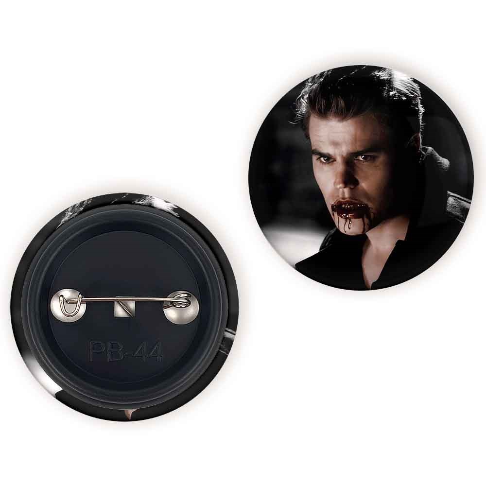 پیکسل 44 میلی متری استفان سالواتوره خاطرات یک خون آشام The Vampire Diaries خندالو با روکش سلفون حرارتی مات مخملی ضدخش و قطعه پشتی رنگی تولید شده است.پلاستیکی پشت پیکسل با سوزن یک تکه ثابت و بدون لغزش و جا به جایی، ایستایی بسیار بهتری نسبت به پشتی فلزی پیکسل دارند که این مهم در تولید این محصول نیز رعایت شده است.