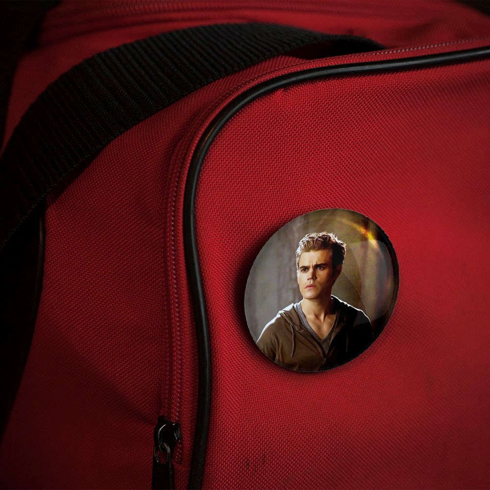 پیکسل 44 میلی متری استفان سالواتوره خاطرات یک خون آشام The Vampire Diaries خندالو با روکش سلفون حرارتی مات مخملی ضدخش و قطعه پشتی رنگی تولید شده است.پلاستیکی پشت پیکسل با سوزن یک تکه ثابت و بدون لغزش و جا به جایی، ایستایی بسیار بهتری نسبت به پشتی فلزی پیکسل دارند که این مهم در تولید این محصول نیز رعایت شده است.