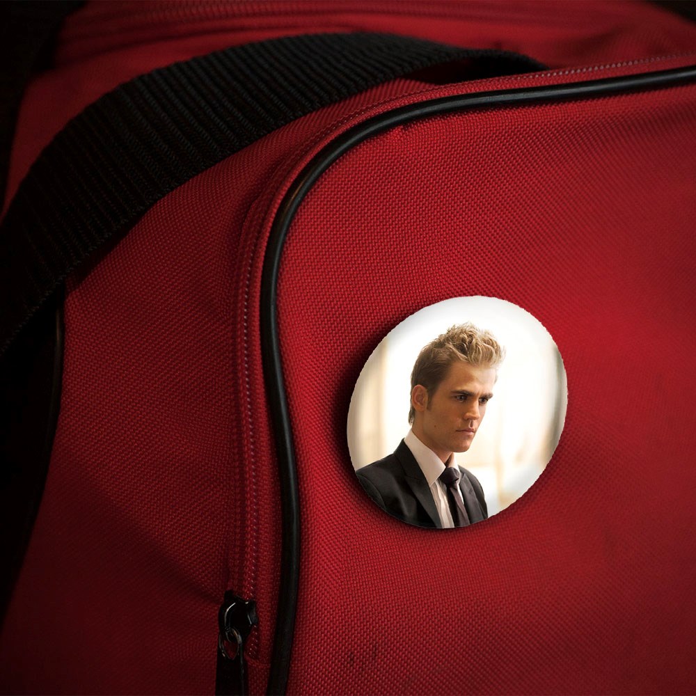 پیکسل 44 میلی متری استفان سالواتوره خاطرات یک خون آشام The Vampire Diaries خندالو با روکش سلفون حرارتی مات مخملی ضدخش و قطعه پشتی رنگی تولید شده است.پلاستیکی پشت پیکسل با سوزن یک تکه ثابت و بدون لغزش و جا به جایی، ایستایی بسیار بهتری نسبت به پشتی فلزی پیکسل دارند که این مهم در تولید این محصول نیز رعایت شده است.
