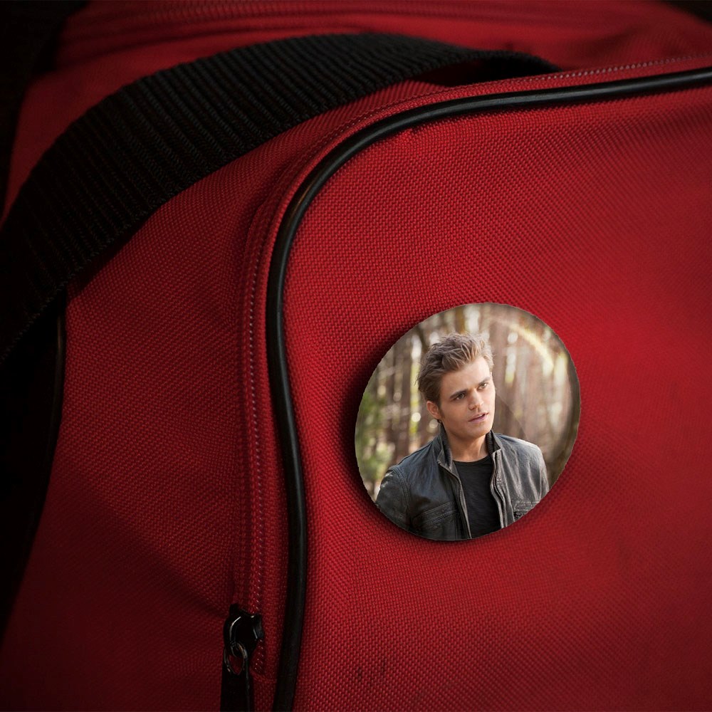 پیکسل 44 میلی متری استفان سالواتوره خاطرات یک خون آشام The Vampire Diaries خندالو با روکش سلفون حرارتی مات مخملی ضدخش و قطعه پشتی رنگی تولید شده است.پلاستیکی پشت پیکسل با سوزن یک تکه ثابت و بدون لغزش و جا به جایی، ایستایی بسیار بهتری نسبت به پشتی فلزی پیکسل دارند که این مهم در تولید این محصول نیز رعایت شده است.