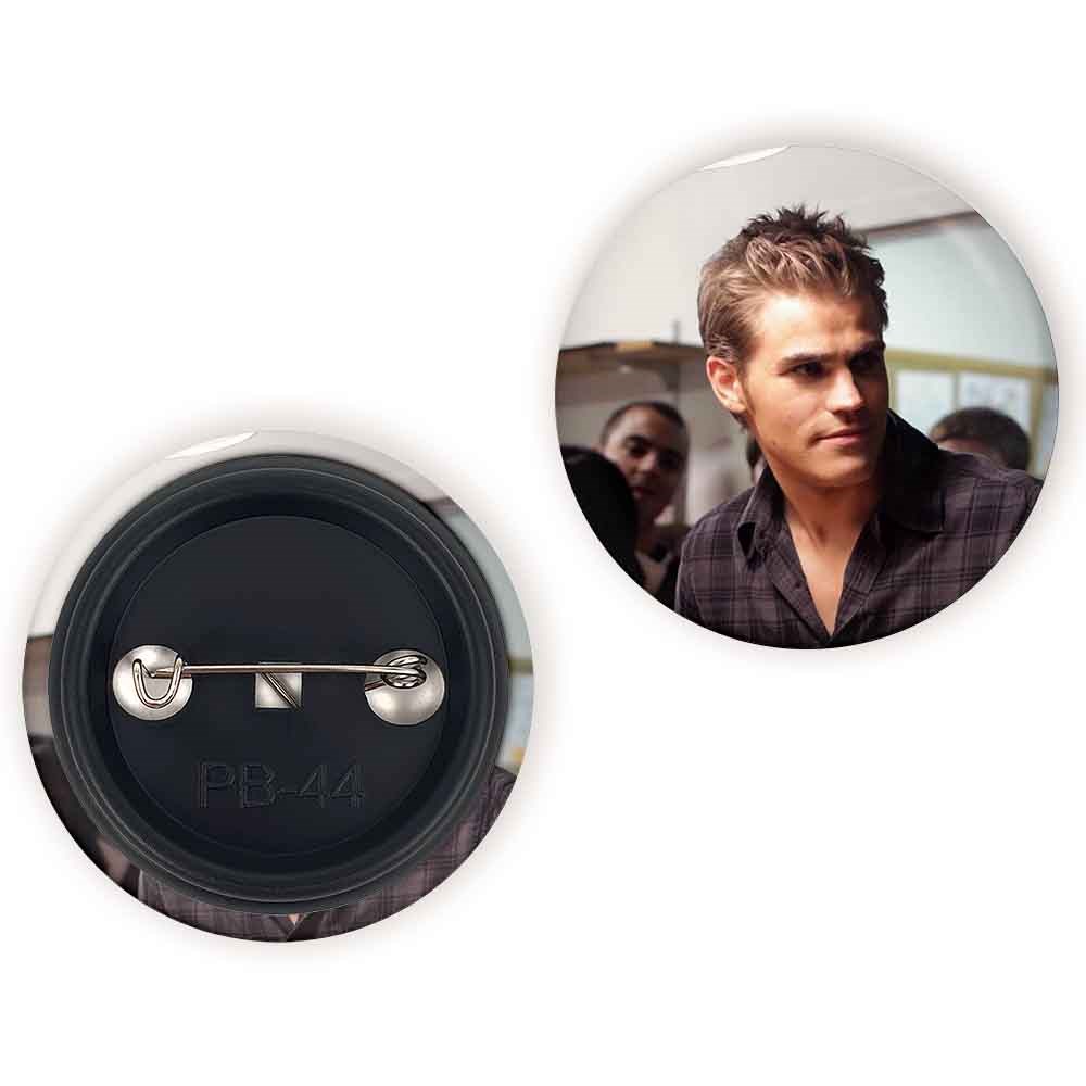 پیکسل 44 میلی متری استفان سالواتوره خاطرات یک خون آشام The Vampire Diaries خندالو با روکش سلفون حرارتی مات مخملی ضدخش و قطعه پشتی رنگی تولید شده است.پلاستیکی پشت پیکسل با سوزن یک تکه ثابت و بدون لغزش و جا به جایی، ایستایی بسیار بهتری نسبت به پشتی فلزی پیکسل دارند که این مهم در تولید این محصول نیز رعایت شده است.