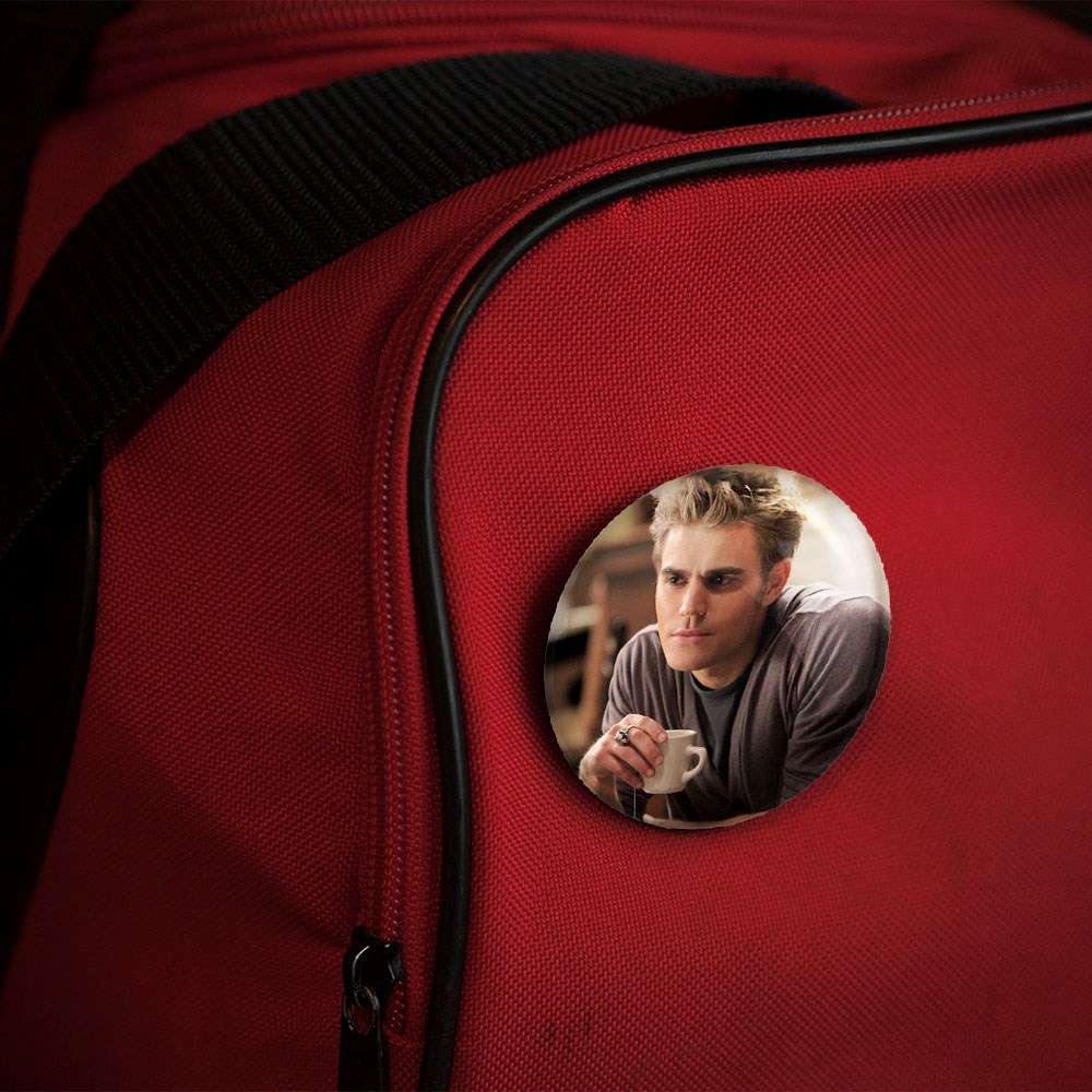 پیکسل 44 میلی متری استفان سالواتوره خاطرات یک خون آشام The Vampire Diaries خندالو با روکش سلفون حرارتی مات مخملی ضدخش و قطعه پشتی رنگی تولید شده است.پلاستیکی پشت پیکسل با سوزن یک تکه ثابت و بدون لغزش و جا به جایی، ایستایی بسیار بهتری نسبت به پشتی فلزی پیکسل دارند که این مهم در تولید این محصول نیز رعایت شده است.