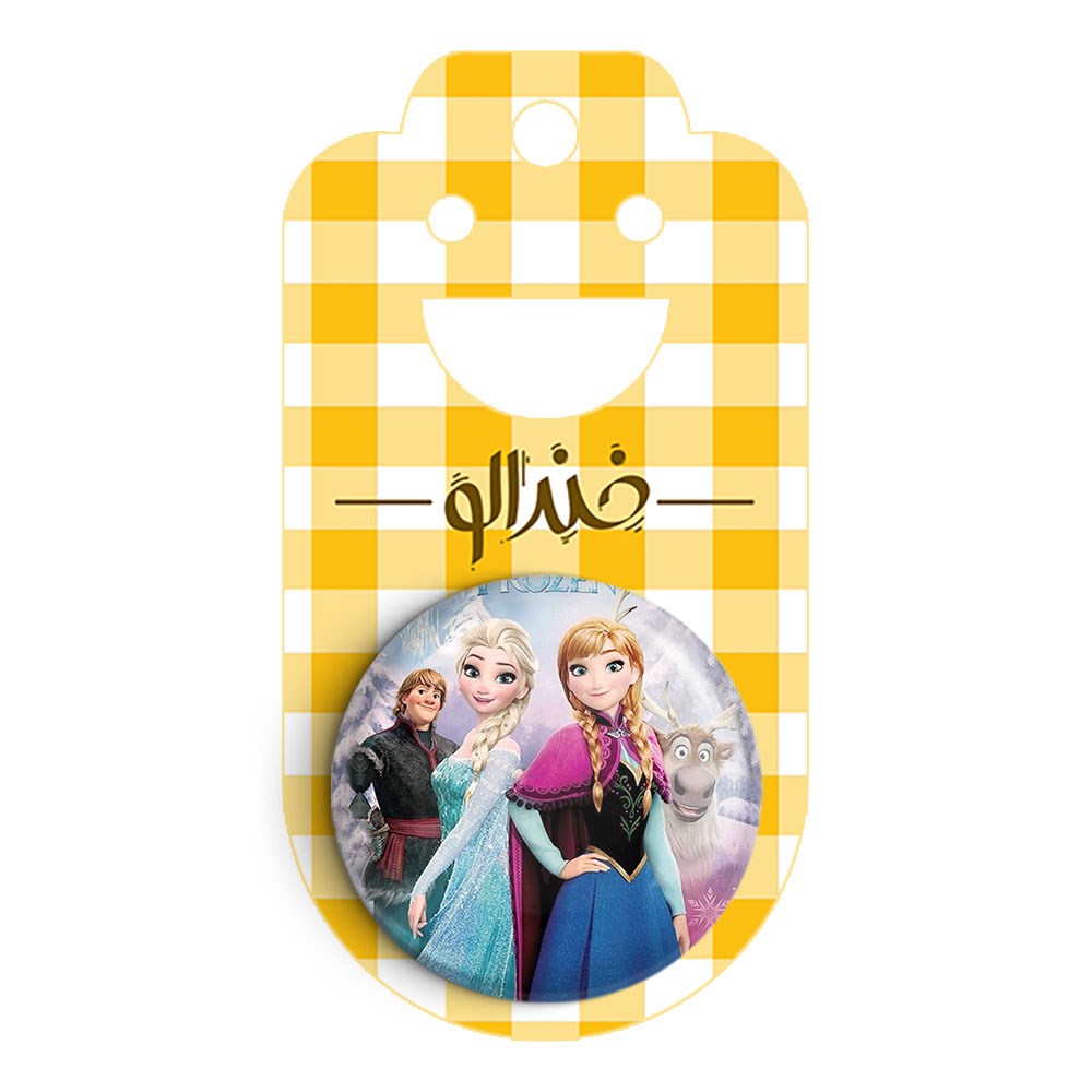 پیکسل 44 میلی متری السا و آنا انیمیشن فروزن Frozen خندالو با روکش سلفون حرارتی مات مخملی ضدخش و قطعه پشتی رنگی تولید شده است.پلاستیکی پشت پیکسل با سوزن یک تکه ثابت و بدون لغزش و جا به جایی، ایستایی بسیار بهتری نسبت به پشتی فلزی پیکسل دارند که این مهم در تولید این محصول نیز رعایت شده است.