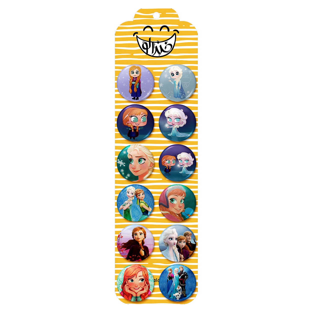 پک 12 عددی پیکسل خندالو طرح السا و آنا و فروزن (Frozen) با روکش سلفون حرارتی براق ضدخش و قطعه پشتی رنگی تولید شده است. قطعات پشتی از میان 6 رنگ سفید، مشکی، صورتی، زرد، آبی و قرمز که با توجه به نوع و رنگبندی طرح روی پیکسل انتخاب شده اند تولید می شود و در هر بسته بندی مطابق عکس محصول می باشد. قطعات پلاستیکی پشت پیکسل با سوزن یک تکه ثابت و بدون لغزش و جا به جایی، ایستایی بسیار بهتری نسبت به پشتی فلزی پیکسل دارند که این مهم در تولید این محصول نیز رعایت شده است.