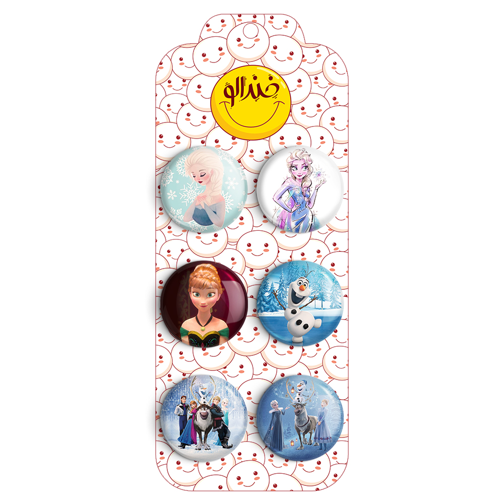 مجموعه 6 عددی پیکسل خندالو طرح السا و آنا و فروزن (Frozen) با روکش سلفون حرارتی براق ضدخش و قطعه پشتی رنگی تولید شده است. قطعات پشتی از میان 6 رنگ سفید، مشکی، صورتی، زرد، آبی و قرمز که با توجه به نوع و رنگبندی طرح روی پیکسل انتخاب شده اند تولید می شود و در هر بسته بندی مطابق عکس محصول می باشد.