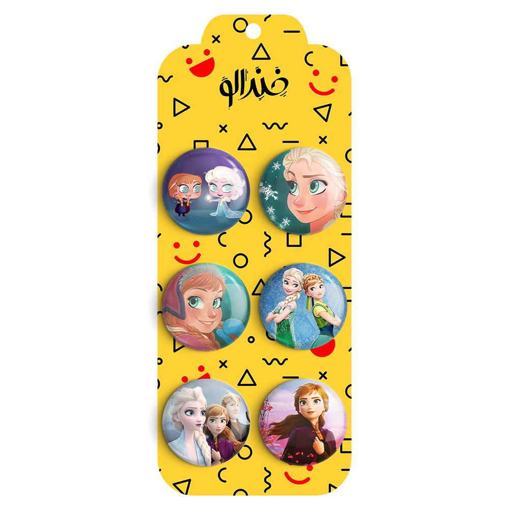 مجموعه 6 عددی پیکسل خندالو طرح السا و آنا و فروزن (Frozen) با روکش سلفون حرارتی براق ضدخش و قطعه پشتی رنگی تولید شده است. قطعات پشتی از میان 6 رنگ سفید، مشکی، صورتی، زرد، آبی و قرمز که با توجه به نوع و رنگبندی طرح روی پیکسل انتخاب شده اند تولید می شود و در هر بسته بندی مطابق عکس محصول می باشد.