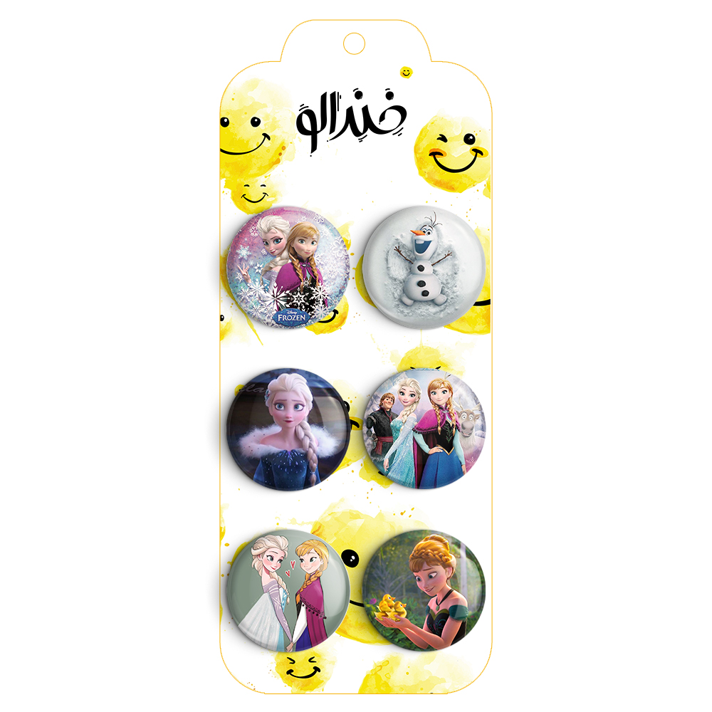 مجموعه 6 عددی پیکسل خندالو طرح السا و آنا و فروزن (Frozen) با روکش سلفون حرارتی براق ضدخش و قطعه پشتی رنگی تولید شده است. قطعات پشتی از میان 6 رنگ سفید، مشکی، صورتی، زرد، آبی و قرمز که با توجه به نوع و رنگبندی طرح روی پیکسل انتخاب شده اند تولید می شود و در هر بسته بندی مطابق عکس محصول می باشد.