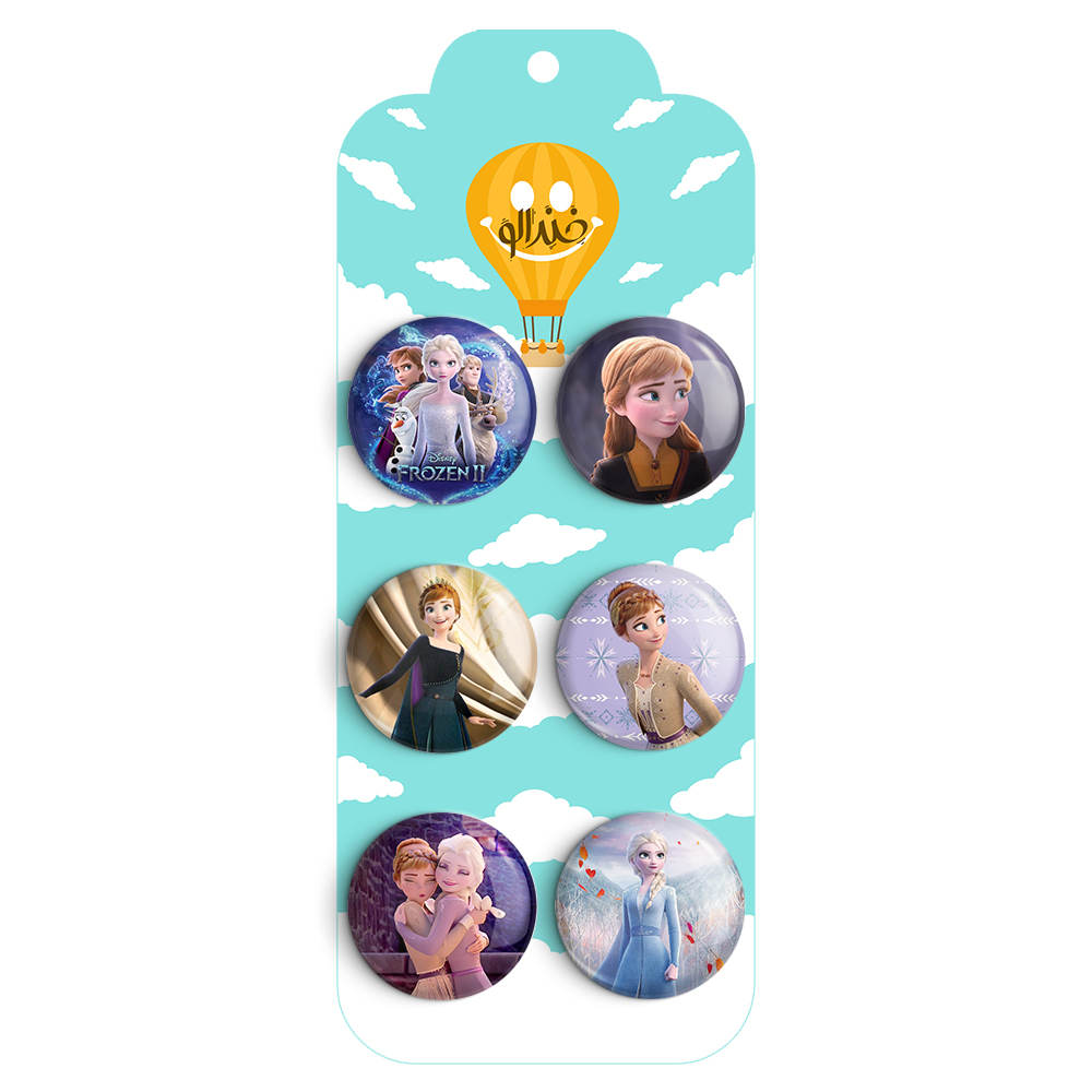 مجموعه 6 عددی پیکسل خندالو طرح السا و آنا و فروزن (Frozen) با روکش سلفون حرارتی براق ضدخش و قطعه پشتی رنگی تولید شده است. قطعات پشتی از میان 6 رنگ سفید، مشکی، صورتی، زرد، آبی و قرمز که با توجه به نوع و رنگبندی طرح روی پیکسل انتخاب شده اند تولید می شود و در هر بسته بندی مطابق عکس محصول می باشد. قطعات پلاستیکی پشت پیکسل با سوزن یک تکه ثابت و بدون لغزش و جا به جایی، ایستایی بسیار بهتری نسبت به پشتی فلزی پیکسل دارند که این مهم در تولید این محصول نیز رعایت شده است. چاپ پیکسل نیز با دستگاه های استاندارد و با بهترین سطح کیفی صورت گرفته و طرح با شفافیتی مثال زدنی و با سلفونی بدون شکست نور بر روی پیکسل نقش بسته است. همچنین بسته بندی جذاب و مینیمال پیکسل ها، آنها را مناسب هدیه کرده است..
