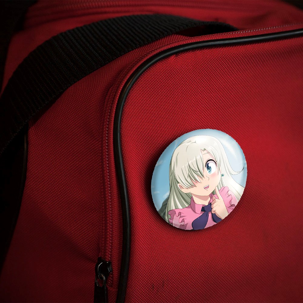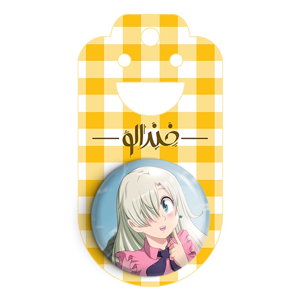 پیکسل 44 میلی متری الیزابت انیمه هفت گناه کبیره خندالو با روکش سلفون حرارتی مات مخملی ضدخش و قطعه پشتی رنگی تولید شده است.پلاستیکی پشت پیکسل با سوزن یک تکه ثابت و بدون لغزش و جا به جایی، ایستایی بسیار بهتری نسبت به پشتی فلزی پیکسل دارند که این مهم در تولید این محصول نیز رعایت شده است.