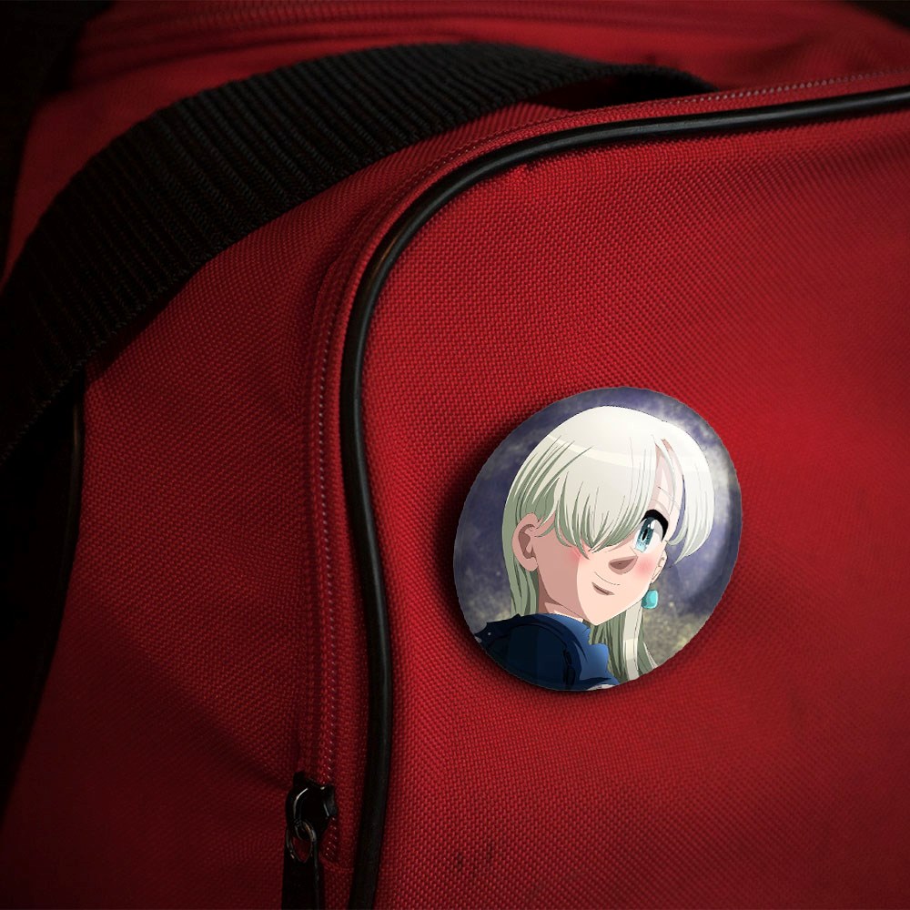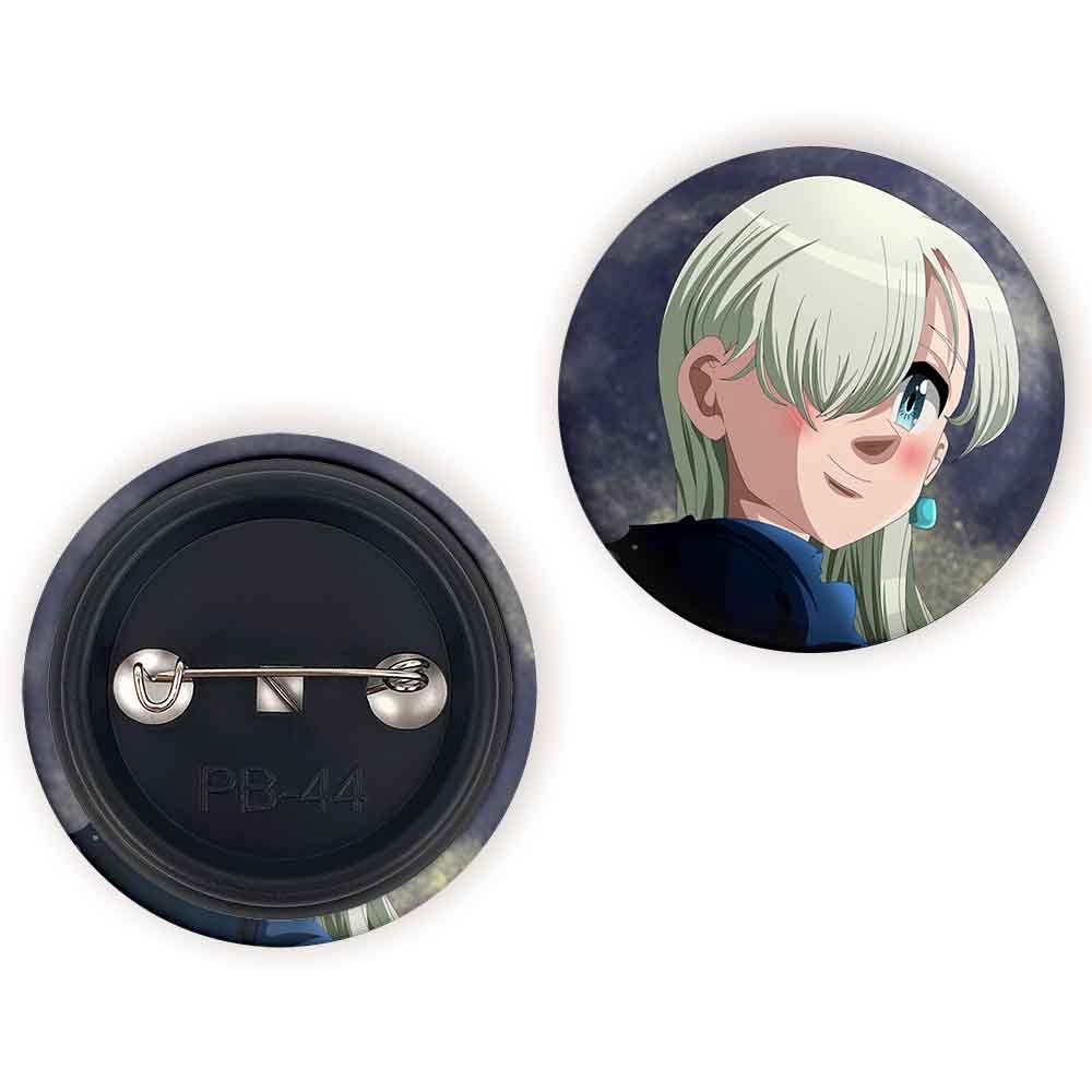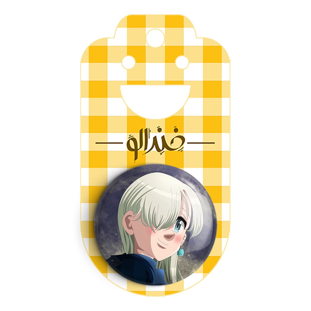 پیکسل 44 میلی متری الیزابت انیمه هفت گناه کبیره خندالو با روکش سلفون حرارتی مات مخملی ضدخش و قطعه پشتی رنگی تولید شده است.پلاستیکی پشت پیکسل با سوزن یک تکه ثابت و بدون لغزش و جا به جایی، ایستایی بسیار بهتری نسبت به پشتی فلزی پیکسل دارند که این مهم در تولید این محصول نیز رعایت شده است.