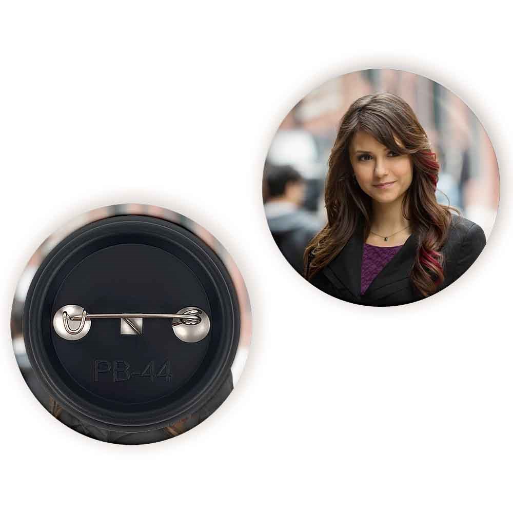 پیکسل 44 میلی متری الینا گیلبرت خاطرات یک خون آشام The Vampire Diaries خندالو با روکش سلفون حرارتی مات مخملی ضدخش و قطعه پشتی رنگی تولید شده است.پلاستیکی پشت پیکسل با سوزن یک تکه ثابت و بدون لغزش و جا به جایی، ایستایی بسیار بهتری نسبت به پشتی فلزی پیکسل دارند که این مهم در تولید این محصول نیز رعایت شده است.