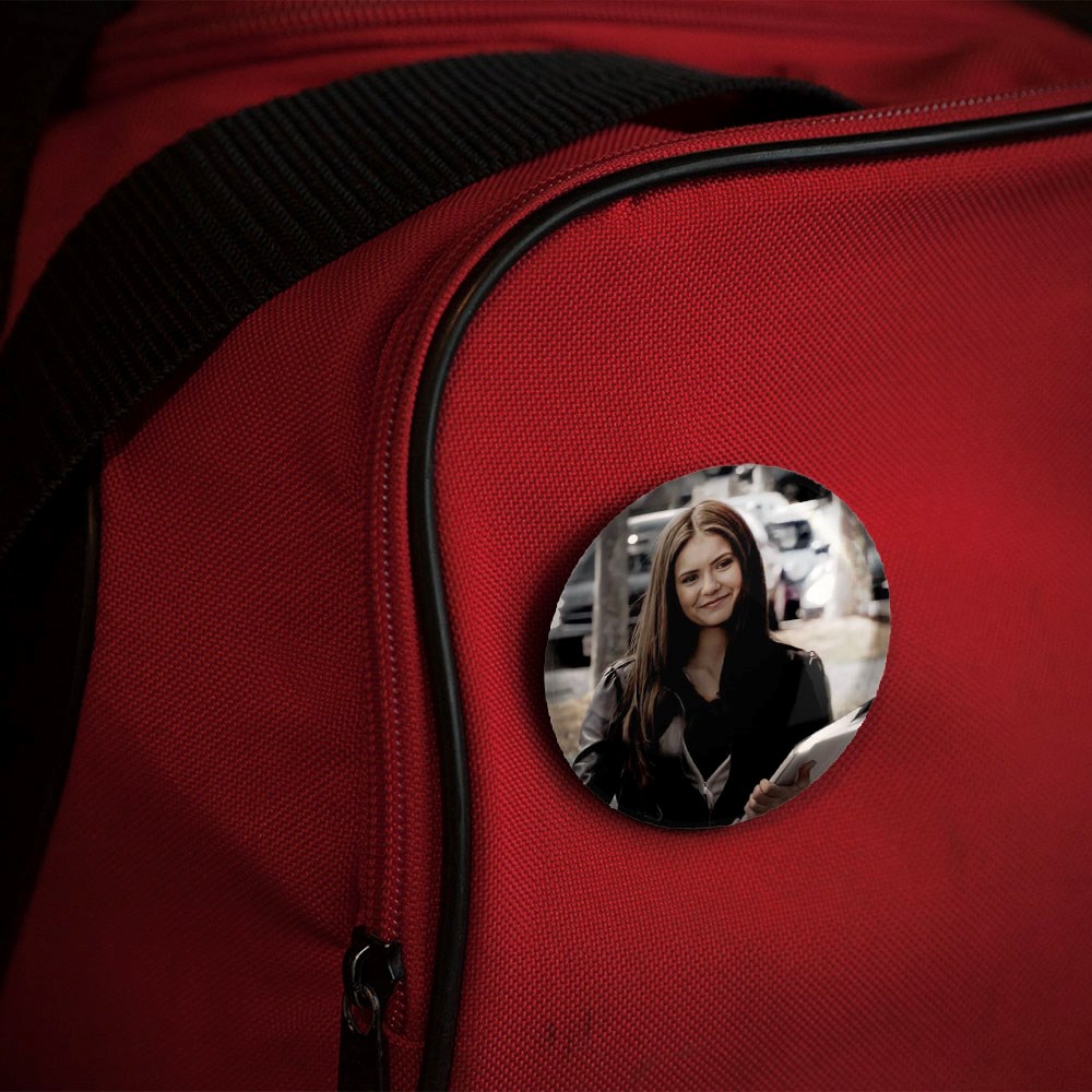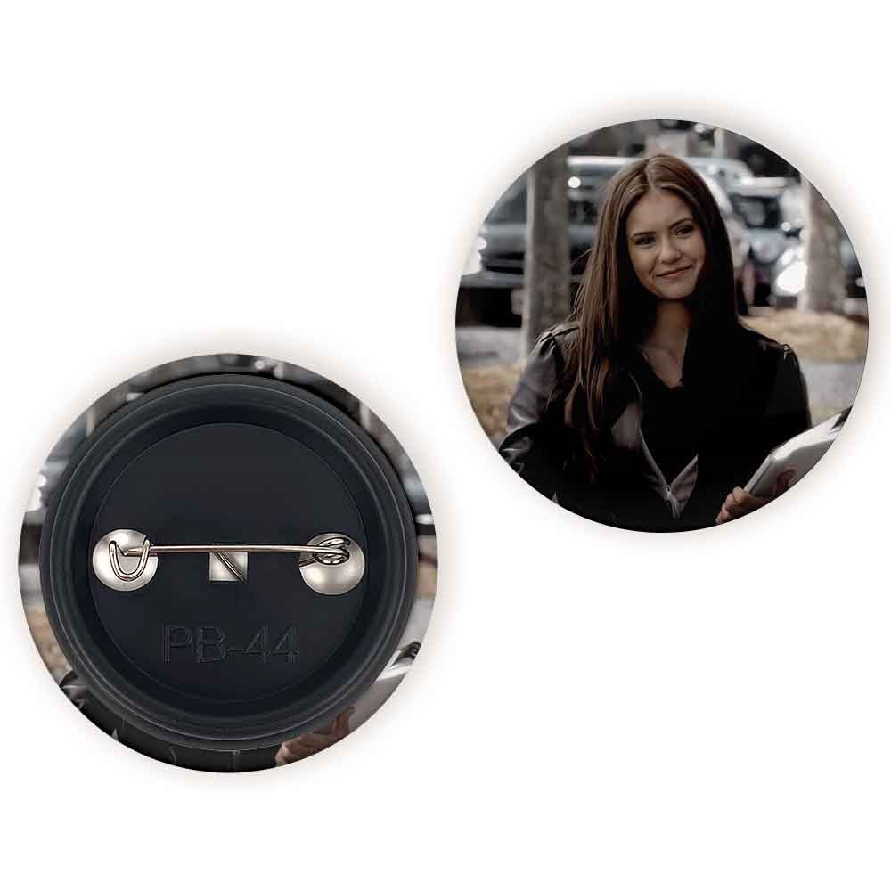 پیکسل 44 میلی متری الینا گیلبرت خاطرات یک خون آشام The Vampire Diaries خندالو با روکش سلفون حرارتی مات مخملی ضدخش و قطعه پشتی رنگی تولید شده است.پلاستیکی پشت پیکسل با سوزن یک تکه ثابت و بدون لغزش و جا به جایی، ایستایی بسیار بهتری نسبت به پشتی فلزی پیکسل دارند که این مهم در تولید این محصول نیز رعایت شده است.