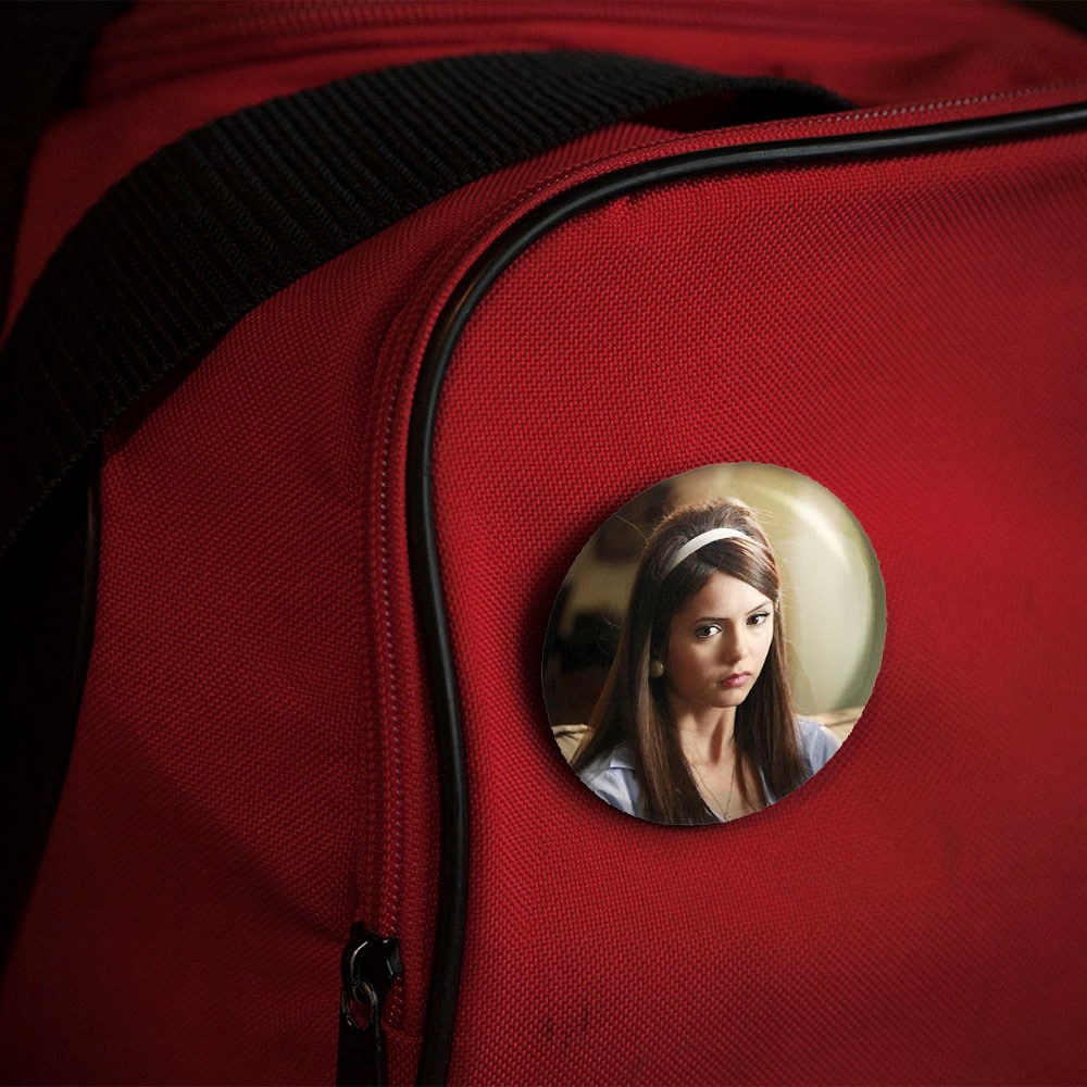پیکسل 44 میلی متری الینا گیلبرت خاطرات یک خون آشام The Vampire Diaries خندالو با روکش سلفون حرارتی مات مخملی ضدخش و قطعه پشتی رنگی تولید شده است.پلاستیکی پشت پیکسل با سوزن یک تکه ثابت و بدون لغزش و جا به جایی، ایستایی بسیار بهتری نسبت به پشتی فلزی پیکسل دارند که این مهم در تولید این محصول نیز رعایت شده است.