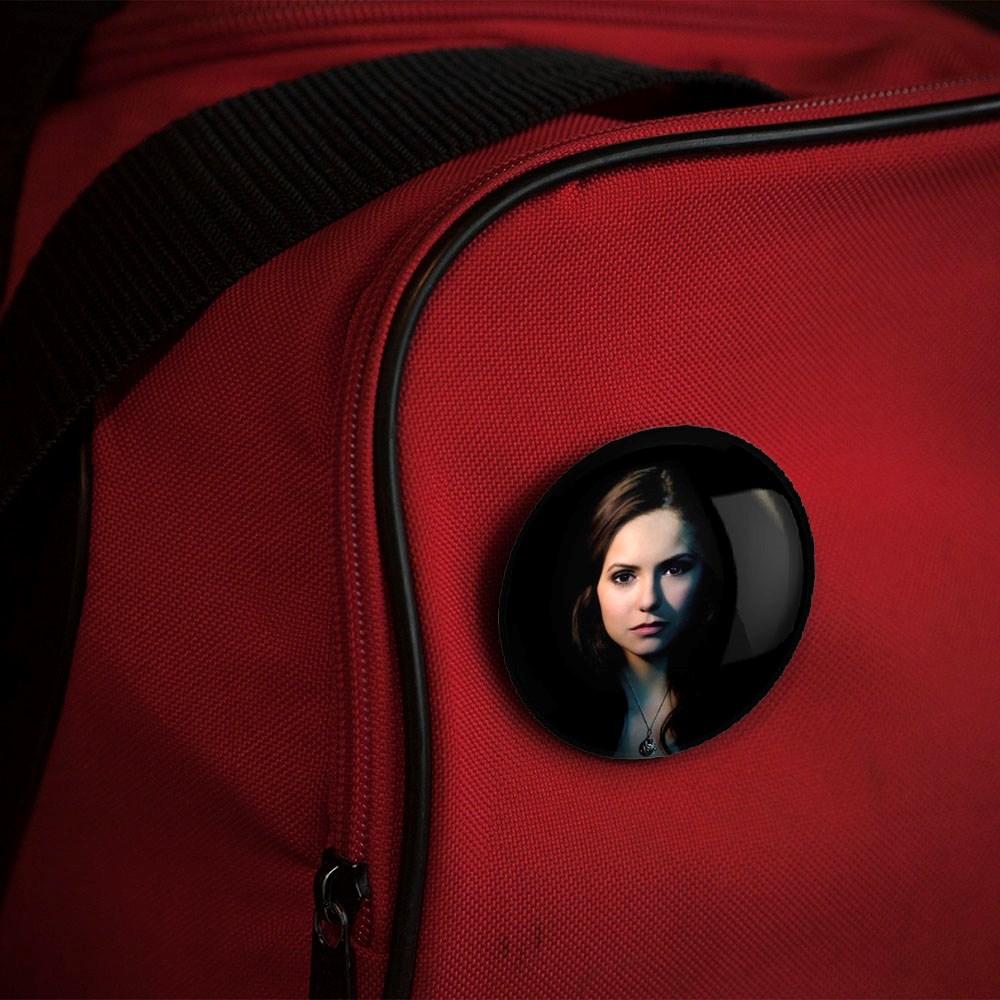 پیکسل 44 میلی متری الینا گیلبرت خاطرات یک خون آشام The Vampire Diaries خندالو با روکش سلفون حرارتی مات مخملی ضدخش و قطعه پشتی رنگی تولید شده است.پلاستیکی پشت پیکسل با سوزن یک تکه ثابت و بدون لغزش و جا به جایی، ایستایی بسیار بهتری نسبت به پشتی فلزی پیکسل دارند که این مهم در تولید این محصول نیز رعایت شده است.