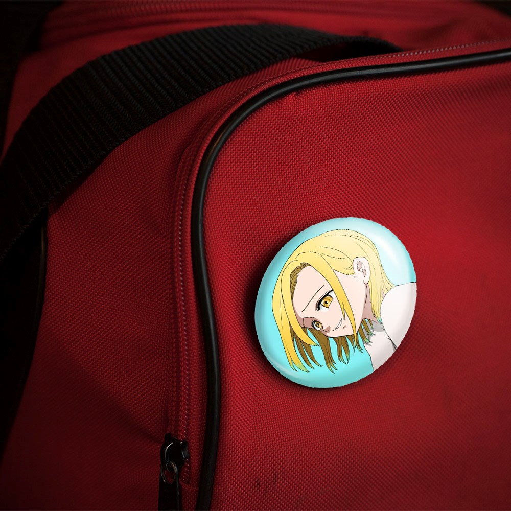 پیکسل 44 میلی متری الین انیمه هفت گناه کبیره خندالو با روکش سلفون حرارتی مات مخملی ضدخش و قطعه پشتی رنگی تولید شده است.پلاستیکی پشت پیکسل با سوزن یک تکه ثابت و بدون لغزش و جا به جایی، ایستایی بسیار بهتری نسبت به پشتی فلزی پیکسل دارند که این مهم در تولید این محصول نیز رعایت شده است.