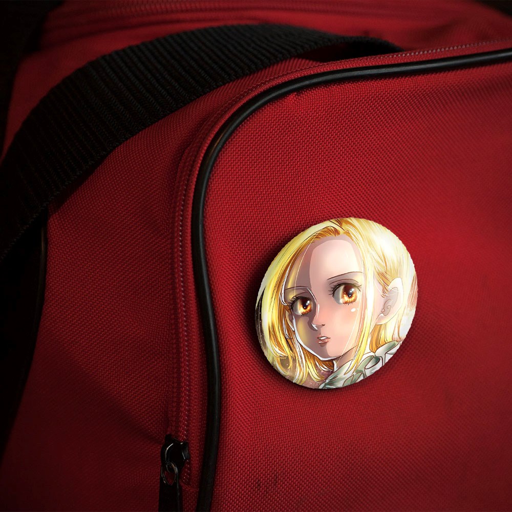 پیکسل 44 میلی متری الین انیمه هفت گناه کبیره خندالو با روکش سلفون حرارتی مات مخملی ضدخش و قطعه پشتی رنگی تولید شده است.پلاستیکی پشت پیکسل با سوزن یک تکه ثابت و بدون لغزش و جا به جایی، ایستایی بسیار بهتری نسبت به پشتی فلزی پیکسل دارند که این مهم در تولید این محصول نیز رعایت شده است.