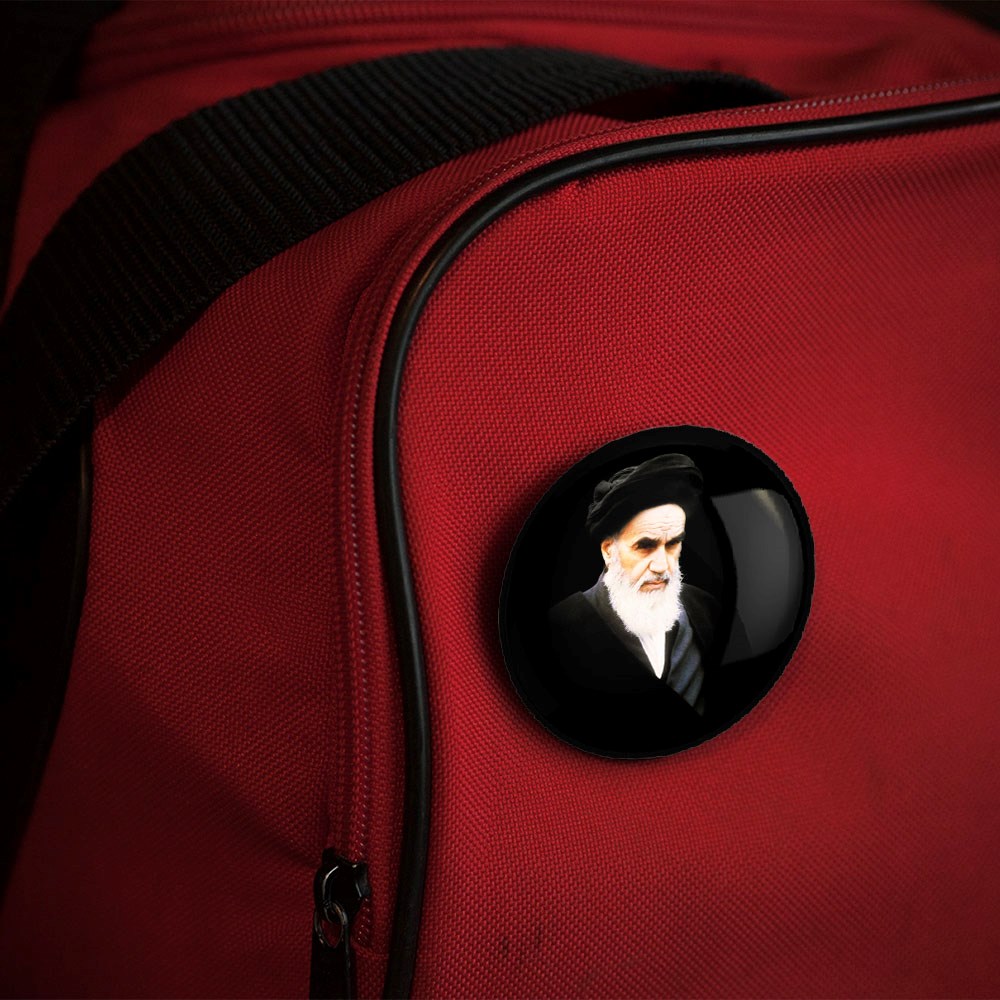 پیکسل 44 میلی متری امام خمینی (ره) خندالو با روکش سلفون حرارتی مات مخملی ضدخش و قطعه پشتی رنگی تولید شده است.پلاستیکی پشت پیکسل با سوزن یک تکه ثابت و بدون لغزش و جا به جایی، ایستایی بسیار بهتری نسبت به پشتی فلزی پیکسل دارند که این مهم در تولید این محصول نیز رعایت شده است.