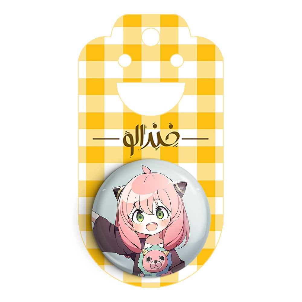 پیکسل 44 میلی متری انیا فورجر انیمه اسپای ایکس فمیلی Spy x Family خندالو با روکش سلفون حرارتی مات مخملی ضدخش و قطعه پشتی رنگی تولید شده است.پلاستیکی پشت پیکسل با سوزن یک تکه ثابت و بدون لغزش و جا به جایی، ایستایی بسیار بهتری نسبت به پشتی فلزی پیکسل دارند که این مهم در تولید این محصول نیز رعایت شده است.