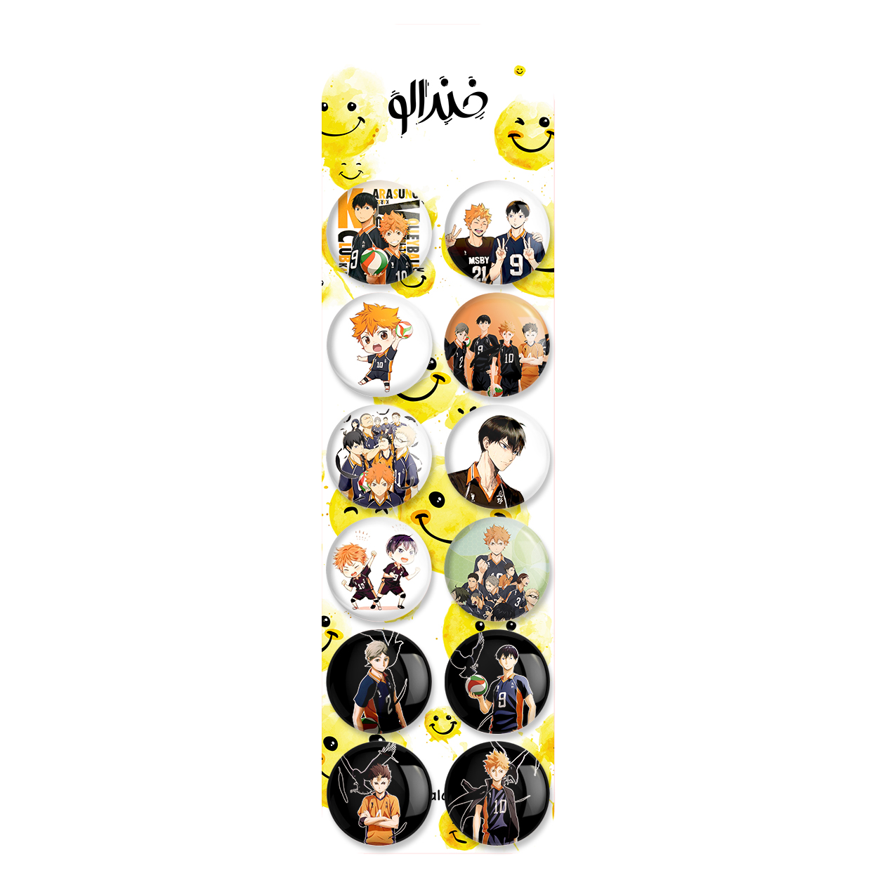 پک 12 عددی پیکسل خندالو طرح انیمه آبشار سرنوشت هایکیو کاگیاما با روکش سلفون حرارتی براق ضدخش و قطعه پشتی رنگی تولید شده است. قطعات پشتی از میان 6 رنگ سفید، مشکی، صورتی، زرد، آبی و قرمز که با توجه به نوع و رنگبندی طرح روی پیکسل انتخاب شده اند تولید می شود و در هر بسته بندی مطابق عکس محصول می باشد. قطعات پلاستیکی پشت پیکسل با سوزن یک تکه ثابت و بدون لغزش و جا به جایی، ایستایی بسیار بهتری نسبت به پشتی فلزی پیکسل دارند که این مهم در تولید این محصول نیز رعایت شده است.