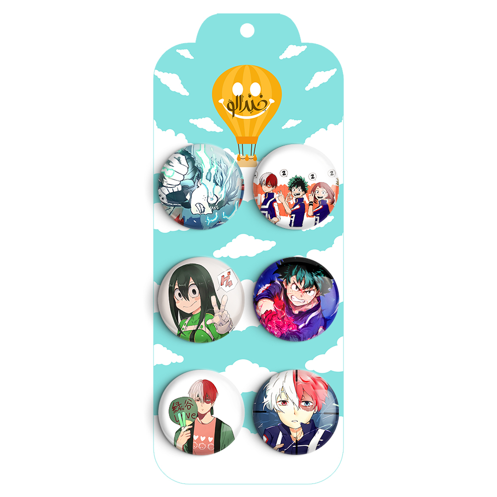 مجموعه 6 عددی پیکسل خندالو طرح انیمه آکادمی قهرمانان من با روکش سلفون حرارتی براق ضدخش و قطعه پشتی رنگی تولید شده است. قطعات پشتی از میان 6 رنگ سفید، مشکی، صورتی، زرد، آبی و قرمز که با توجه به نوع و رنگبندی طرح روی پیکسل انتخاب شده اند تولید می شود و در هر بسته بندی مطابق عکس محصول می باشد.