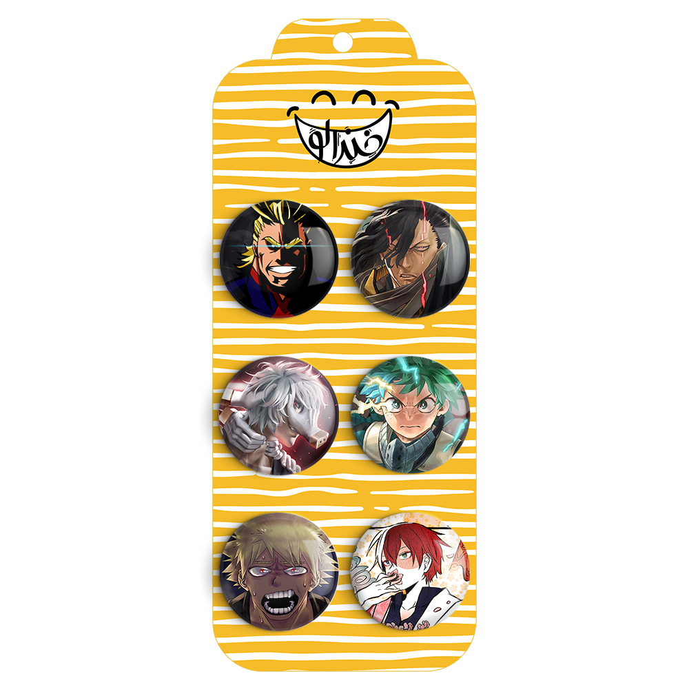 مجموعه 6 عددی پیکسل خندالو طرح انیمه آکادمی قهرمانان من با روکش سلفون حرارتی براق ضدخش و قطعه پشتی رنگی تولید شده است. قطعات پشتی از میان 6 رنگ سفید، مشکی، صورتی، زرد، آبی و قرمز که با توجه به نوع و رنگبندی طرح روی پیکسل انتخاب شده اند تولید می شود و در هر بسته بندی مطابق عکس محصول می باشد.