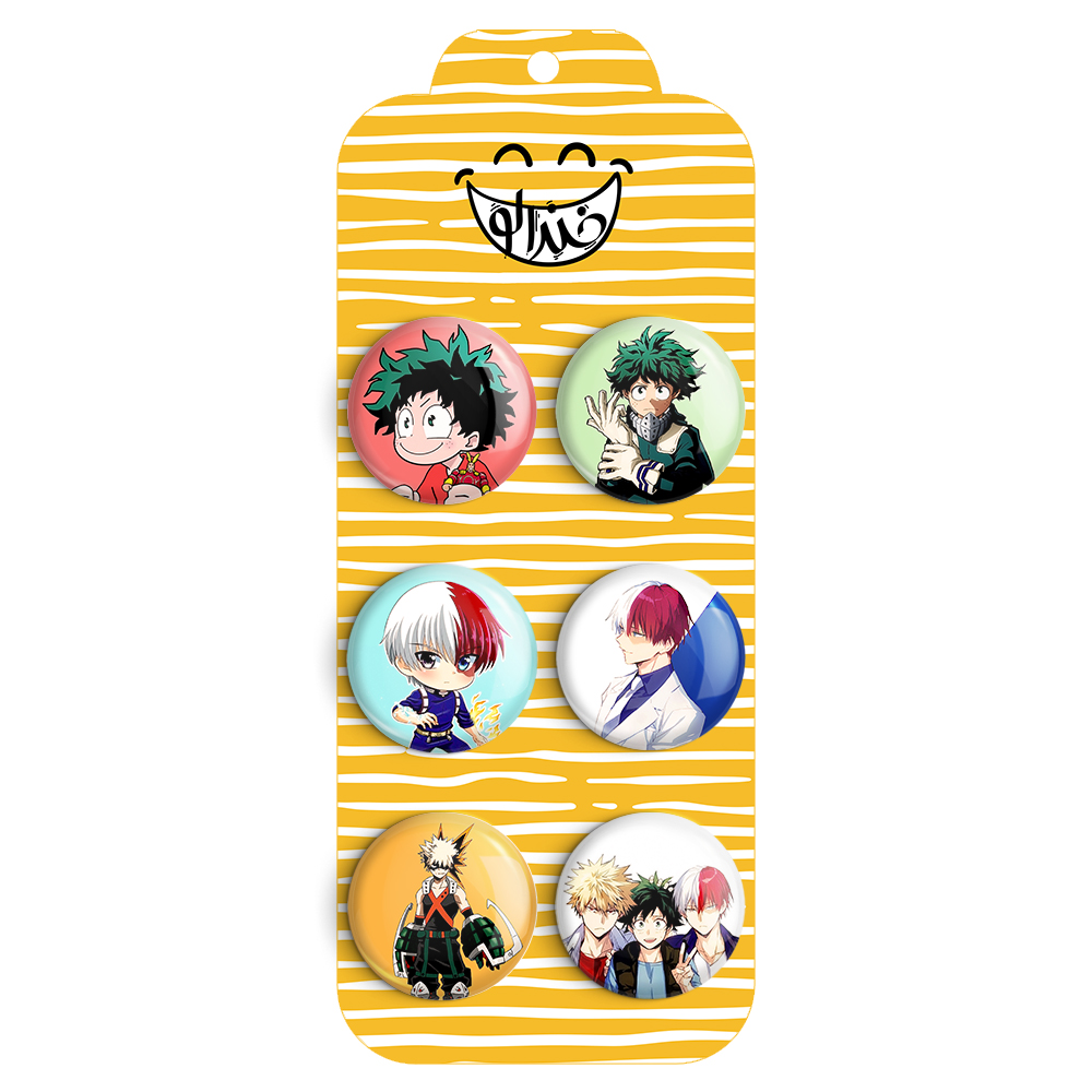 مجموعه 6 عددی پیکسل خندالو طرح انیمه آکادمی قهرمانان من با روکش سلفون حرارتی براق ضدخش و قطعه پشتی رنگی تولید شده است. قطعات پشتی از میان 6 رنگ سفید، مشکی، صورتی، زرد، آبی و قرمز که با توجه به نوع و رنگبندی طرح روی پیکسل انتخاب شده اند تولید می شود و در هر بسته بندی مطابق عکس محصول می باشد.