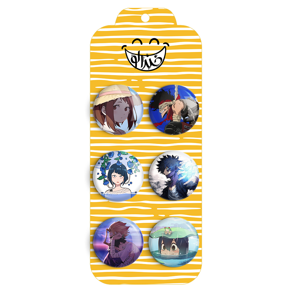 مجموعه 6 عددی پیکسل خندالو طرح انیمه آکادمی قهرمانان من با روکش سلفون حرارتی براق ضدخش و قطعه پشتی رنگی تولید شده است. قطعات پشتی از میان 6 رنگ سفید، مشکی، صورتی، زرد، آبی و قرمز که با توجه به نوع و رنگبندی طرح روی پیکسل انتخاب شده اند تولید می شود و در هر بسته بندی مطابق عکس محصول می باشد.