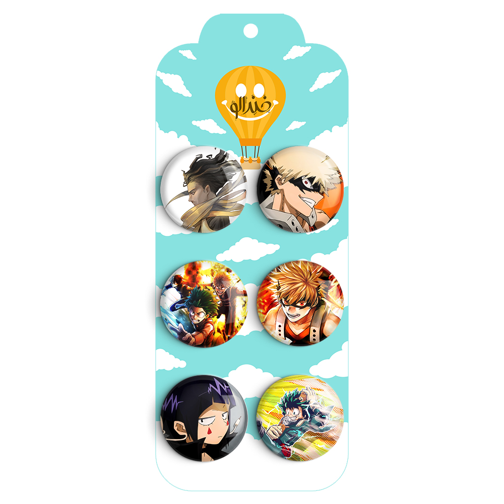 مجموعه 6 عددی پیکسل خندالو طرح انیمه آکادمی قهرمانان من با روکش سلفون حرارتی براق ضدخش و قطعه پشتی رنگی تولید شده است. قطعات پشتی از میان 6 رنگ سفید، مشکی، صورتی، زرد، آبی و قرمز که با توجه به نوع و رنگبندی طرح روی پیکسل انتخاب شده اند تولید می شود و در هر بسته بندی مطابق عکس محصول می باشد.