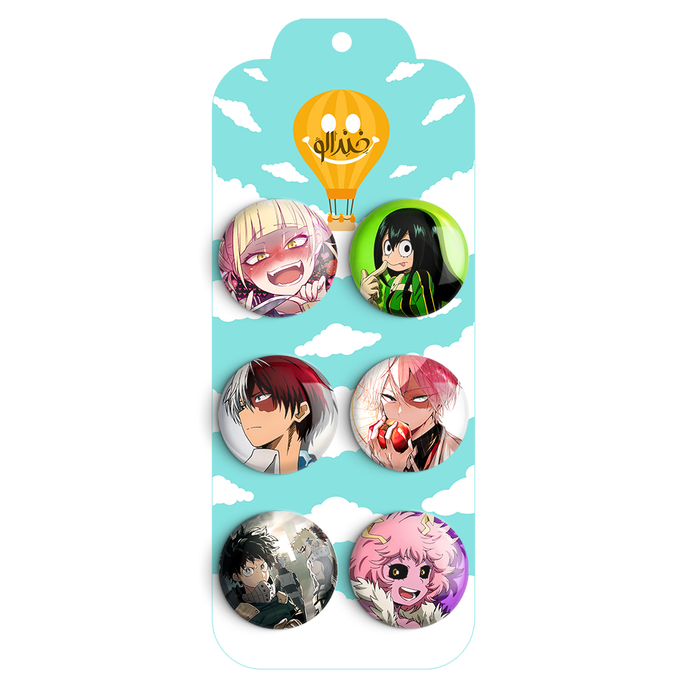 مجموعه 6 عددی پیکسل خندالو طرح انیمه آکادمی قهرمانان من با روکش سلفون حرارتی براق ضدخش و قطعه پشتی رنگی تولید شده است. قطعات پشتی از میان 6 رنگ سفید، مشکی، صورتی، زرد، آبی و قرمز که با توجه به نوع و رنگبندی طرح روی پیکسل انتخاب شده اند تولید می شود و در هر بسته بندی مطابق عکس محصول می باشد.