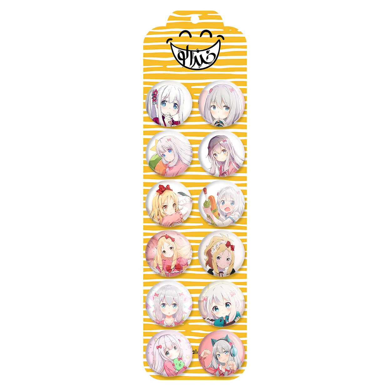 پک 12 عددی پیکسل خندالو طرح انیمه ارومانگا سنسی با روکش سلفون حرارتی براق ضدخش و قطعه پشتی رنگی تولید شده است. قطعات پشتی از میان 6 رنگ سفید، مشکی، صورتی، زرد، آبی و قرمز که با توجه به نوع و رنگبندی طرح روی پیکسل انتخاب شده اند تولید می شود و در هر بسته بندی مطابق عکس محصول می باشد. قطعات پلاستیکی پشت پیکسل با سوزن یک تکه ثابت و بدون لغزش و جا به جایی، ایستایی بسیار بهتری نسبت به پشتی فلزی پیکسل دارند که این مهم در تولید این محصول نیز رعایت شده است.