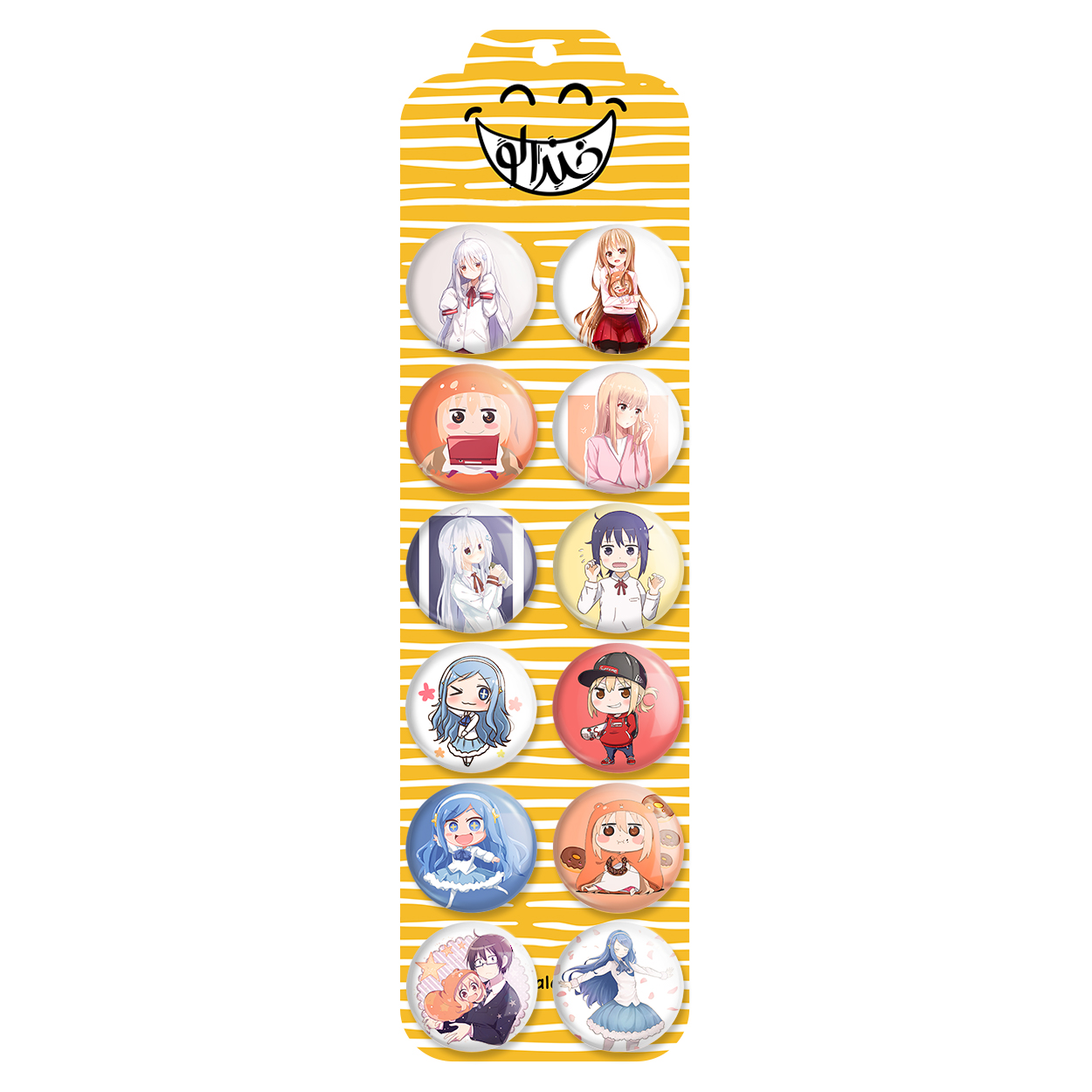 پک 12 عددی پیکسل خندالو طرح انیمه اوماروچان (Umaru Chan) با روکش سلفون حرارتی براق ضدخش و قطعه پشتی رنگی تولید شده است. قطعات پشتی از میان 6 رنگ سفید، مشکی، صورتی، زرد، آبی و قرمز که با توجه به نوع و رنگبندی طرح روی پیکسل انتخاب شده اند تولید می شود و در هر بسته بندی مطابق عکس محصول می باشد. قطعات پلاستیکی پشت پیکسل با سوزن یک تکه ثابت و بدون لغزش و جا به جایی، ایستایی بسیار بهتری نسبت به پشتی فلزی پیکسل دارند که این مهم در تولید این محصول نیز رعایت شده است.