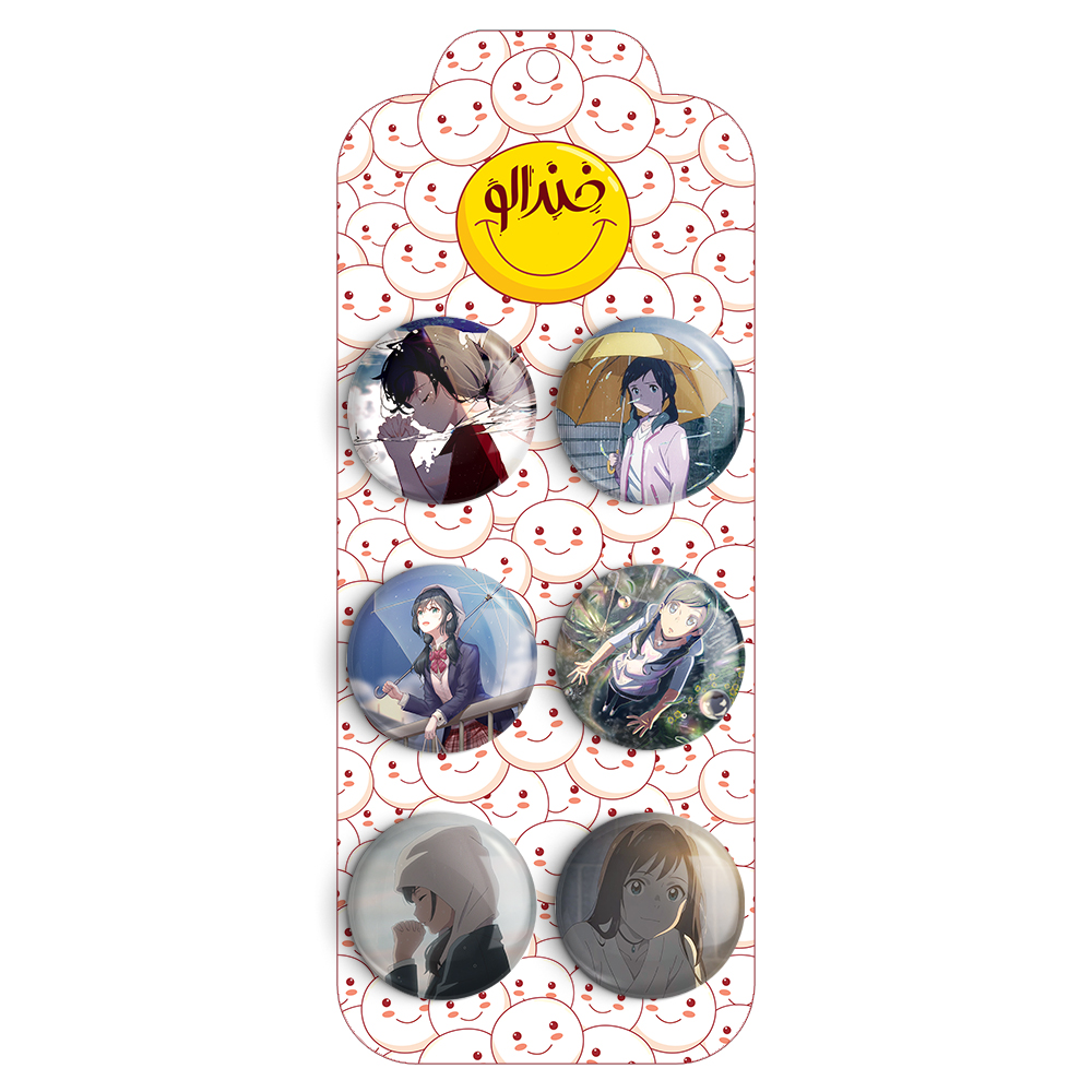 مجموعه 6 عددی پیکسل خندالو طرح انیمه تغییر آب و هوا با تو با روکش سلفون حرارتی براق ضدخش و قطعه پشتی رنگی تولید شده است. قطعات پشتی از میان 6 رنگ سفید، مشکی، صورتی، زرد، آبی و قرمز که با توجه به نوع و رنگبندی طرح روی پیکسل انتخاب شده اند تولید می شود و در هر بسته بندی مطابق عکس محصول می باشد.