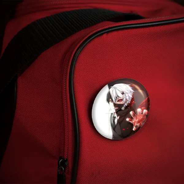 پیکسل 44 میلی متری انیمه توکیو غول Tokyo Ghoul خندالو با روکش سلفون حرارتی مات مخملی ضدخش و قطعه پشتی رنگی تولید شده است. قطعات پلاستیکی پشت پیکسل با سوزن یک تکه ثابت و بدون لغزش و جا به جایی، ایستایی بسیار بهتری نسبت به پشتی فلزی پیکسل دارند که این مهم در تولید این محصول نیز رعایت شده است. چاپ پیکسل انیمه توکیو غول Tokyo Ghoul نیز با دستگاه های استاندارد و با بهترین سطح کیفی صورت گرفته و طرح با شفافیتی مثال زدنی و با سلفونی بدون شکست نور بر روی پیکسل نقش بسته است. همچنین بسته بندی جذاب و مینیمال پیکسل انیمه توکیو غول Tokyo Ghoul ، آنها را مناسب هدیه کرده است.