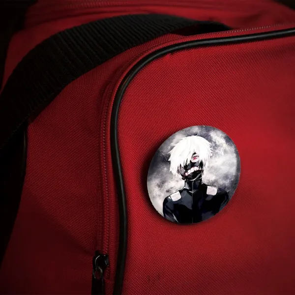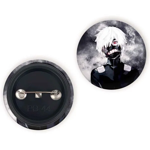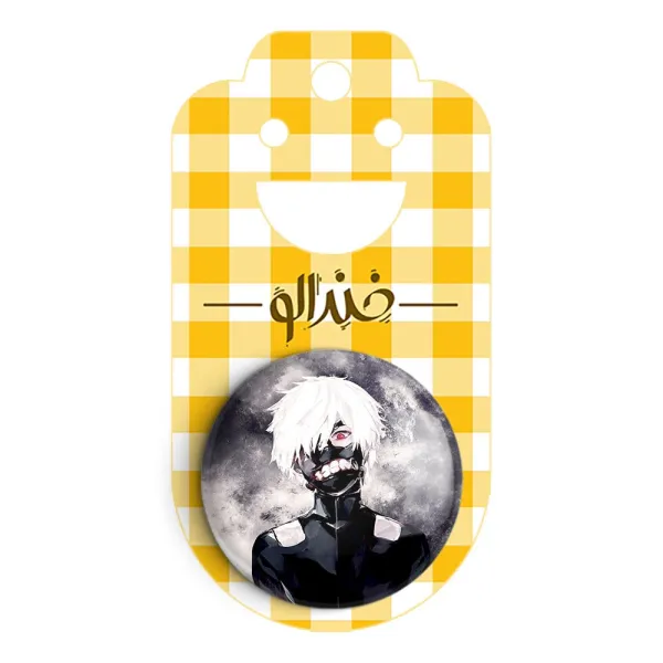پیکسل 44 میلی متری انیمه توکیو غول Tokyo Ghoul خندالو با روکش سلفون حرارتی مات مخملی ضدخش و قطعه پشتی رنگی تولید شده است.پلاستیکی پشت پیکسل با سوزن یک تکه ثابت و بدون لغزش و جا به جایی، ایستایی بسیار بهتری نسبت به پشتی فلزی پیکسل دارند که این مهم در تولید این محصول نیز رعایت شده است.