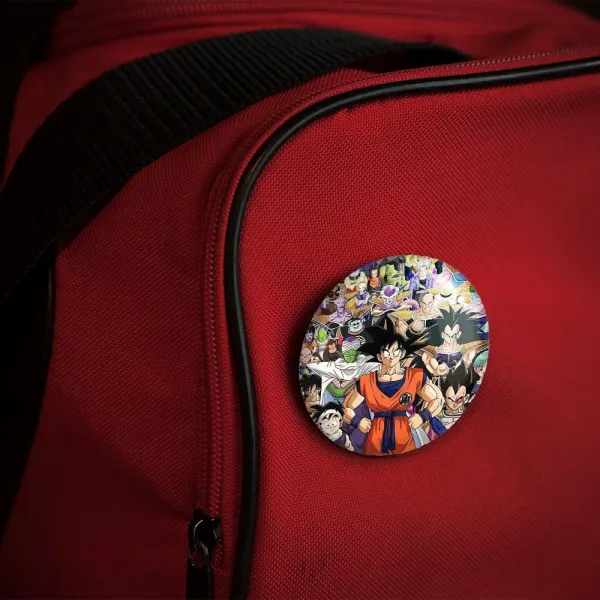 پیکسل 44 میلی متری انیمه دراگون بال Dragon Ball خندالو با روکش سلفون حرارتی مات مخملی ضدخش و قطعه پشتی رنگی تولید شده است.پلاستیکی پشت پیکسل با سوزن یک تکه ثابت و بدون لغزش و جا به جایی، ایستایی بسیار بهتری نسبت به پشتی فلزی پیکسل دارند که این مهم در تولید این محصول نیز رعایت شده است.