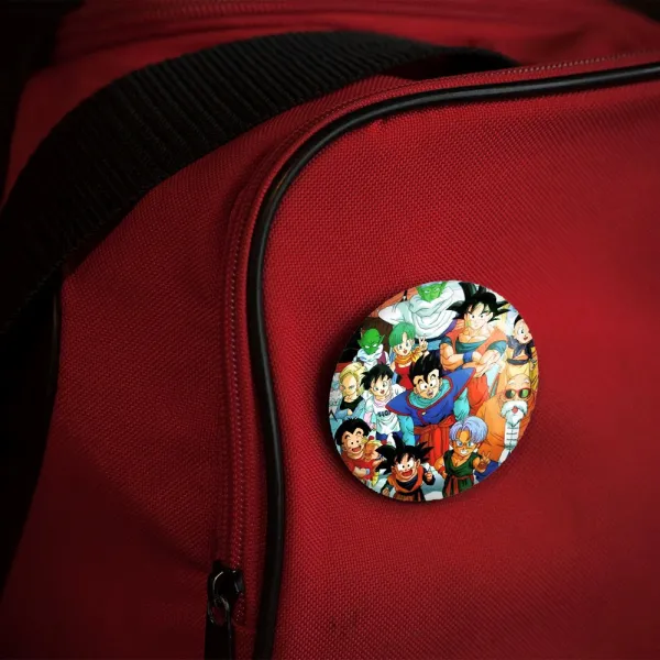 پیکسل 44 میلی متری انیمه دراگون بال Dragon Ball خندالو با روکش سلفون حرارتی مات مخملی ضدخش و قطعه پشتی رنگی تولید شده است.پلاستیکی پشت پیکسل با سوزن یک تکه ثابت و بدون لغزش و جا به جایی، ایستایی بسیار بهتری نسبت به پشتی فلزی پیکسل دارند که این مهم در تولید این محصول نیز رعایت شده است.