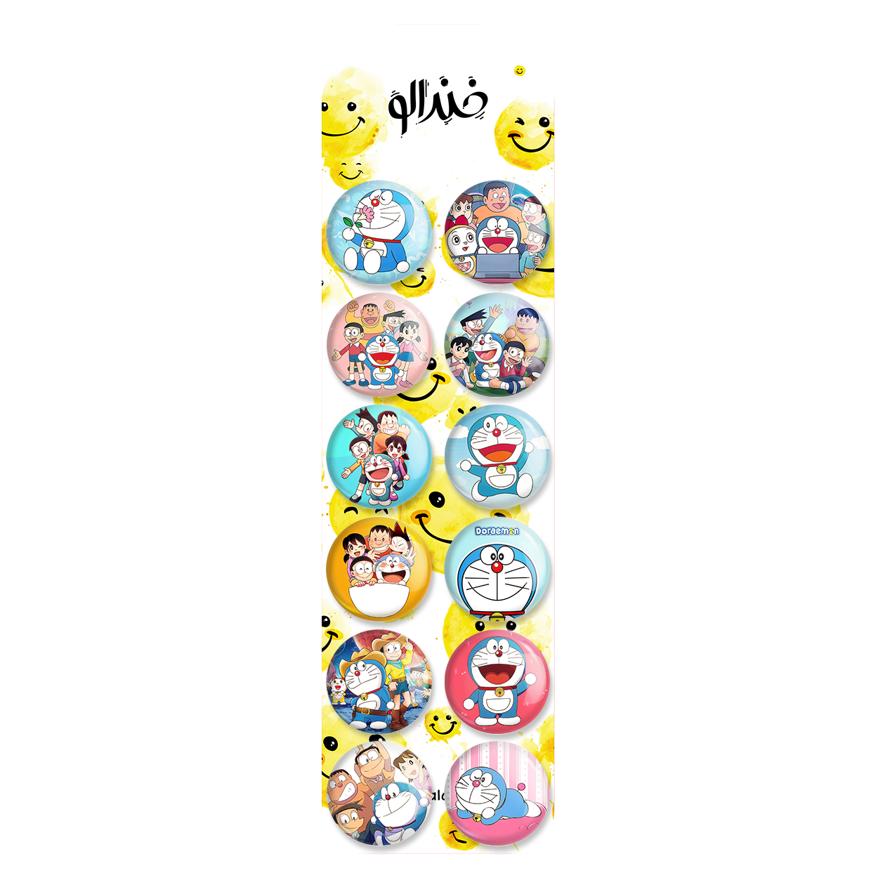 پک 12 عددی پیکسل خندالو طرح انیمه دورایمون (Doraemon) با روکش سلفون حرارتی براق ضدخش و قطعه پشتی رنگی تولید شده است. قطعات پشتی از میان 6 رنگ سفید، مشکی، صورتی، زرد، آبی و قرمز که با توجه به نوع و رنگبندی طرح روی پیکسل انتخاب شده اند تولید می شود و در هر بسته بندی مطابق عکس محصول می باشد. قطعات پلاستیکی پشت پیکسل با سوزن یک تکه ثابت و بدون لغزش و جا به جایی، ایستایی بسیار بهتری نسبت به پشتی فلزی پیکسل دارند که این مهم در تولید این محصول نیز رعایت شده است. چاپ پیکسل طرح انیمه دورایمون (Doraemon) بسته ۱۲ عددی نیز با دستگاه های استاندارد و با بهترین سطح کیفی صورت گرفته و طرح با شفافیتی مثال زدنی و با سلفونی بدون شکست نور بر روی پیکسل نقش بسته است.