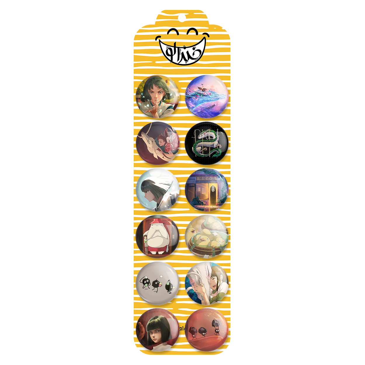 پک 12 عددی پیکسل خندالو طرح انیمه شهر اشباح (Spirited Away) با روکش سلفون حرارتی براق ضدخش و قطعه پشتی رنگی تولید شده است. قطعات پشتی از میان 6 رنگ سفید، مشکی، صورتی، زرد، آبی و قرمز که با توجه به نوع و رنگبندی طرح روی پیکسل انتخاب شده اند تولید می شود و در هر بسته بندی مطابق عکس محصول می باشد. قطعات پلاستیکی پشت پیکسل با سوزن یک تکه ثابت و بدون لغزش و جا به جایی، ایستایی بسیار بهتری نسبت به پشتی فلزی پیکسل دارند که این مهم در تولید این محصول نیز رعایت شده است.