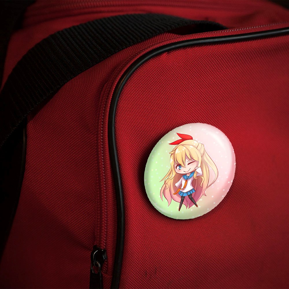 پیکسل 44 میلی متری انیمه عشق دروغین خندالو با روکش سلفون حرارتی مات مخملی ضدخش و قطعه پشتی رنگی تولید شده است.پلاستیکی پشت پیکسل با سوزن یک تکه ثابت و بدون لغزش و جا به جایی، ایستایی بسیار بهتری نسبت به پشتی فلزی پیکسل دارند که این مهم در تولید این محصول نیز رعایت شده است.