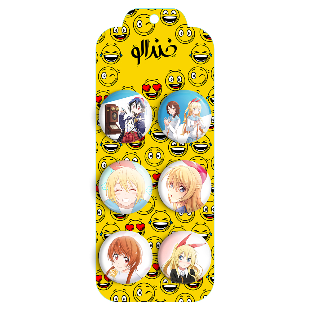 مجموعه 6 عددی پیکسل خندالو طرح انیمه عشق دروغین با روکش سلفون حرارتی براق ضدخش و قطعه پشتی رنگی تولید شده است. قطعات پشتی از میان 6 رنگ سفید، مشکی، صورتی، زرد، آبی و قرمز که با توجه به نوع و رنگبندی طرح روی پیکسل انتخاب شده اند تولید می شود و در هر بسته بندی مطابق عکس محصول می باشد.