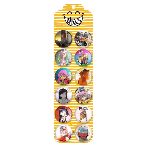 پک 12 عددی پیکسل خندالو طرح انیمه فولی کولی با روکش سلفون حرارتی براق ضدخش و قطعه پشتی رنگی تولید شده است. قطعات پشتی از میان 6 رنگ سفید، مشکی، صورتی، زرد، آبی و قرمز که با توجه به نوع و رنگبندی طرح روی پیکسل انتخاب شده اند تولید می شود و در هر بسته بندی مطابق عکس محصول می باشد. قطعات پلاستیکی پشت پیکسل با سوزن یک تکه ثابت و بدون لغزش و جا به جایی، ایستایی بسیار بهتری نسبت به پشتی فلزی پیکسل دارند که این مهم در تولید این محصول نیز رعایت شده است.