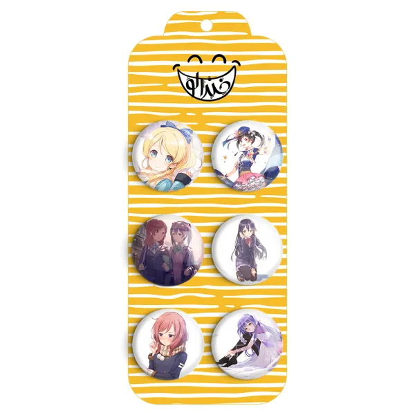مجموعه 6 عددی پیکسل خندالو طرح انیمه لاولایو (Love Live) با روکش سلفون حرارتی براق ضدخش و قطعه پشتی رنگی تولید شده است. قطعات پشتی از میان 6 رنگ سفید، مشکی، صورتی، زرد، آبی و قرمز که با توجه به نوع و رنگبندی طرح روی پیکسل انتخاب شده اند تولید می شود و در هر بسته بندی مطابق عکس محصول می باشد.