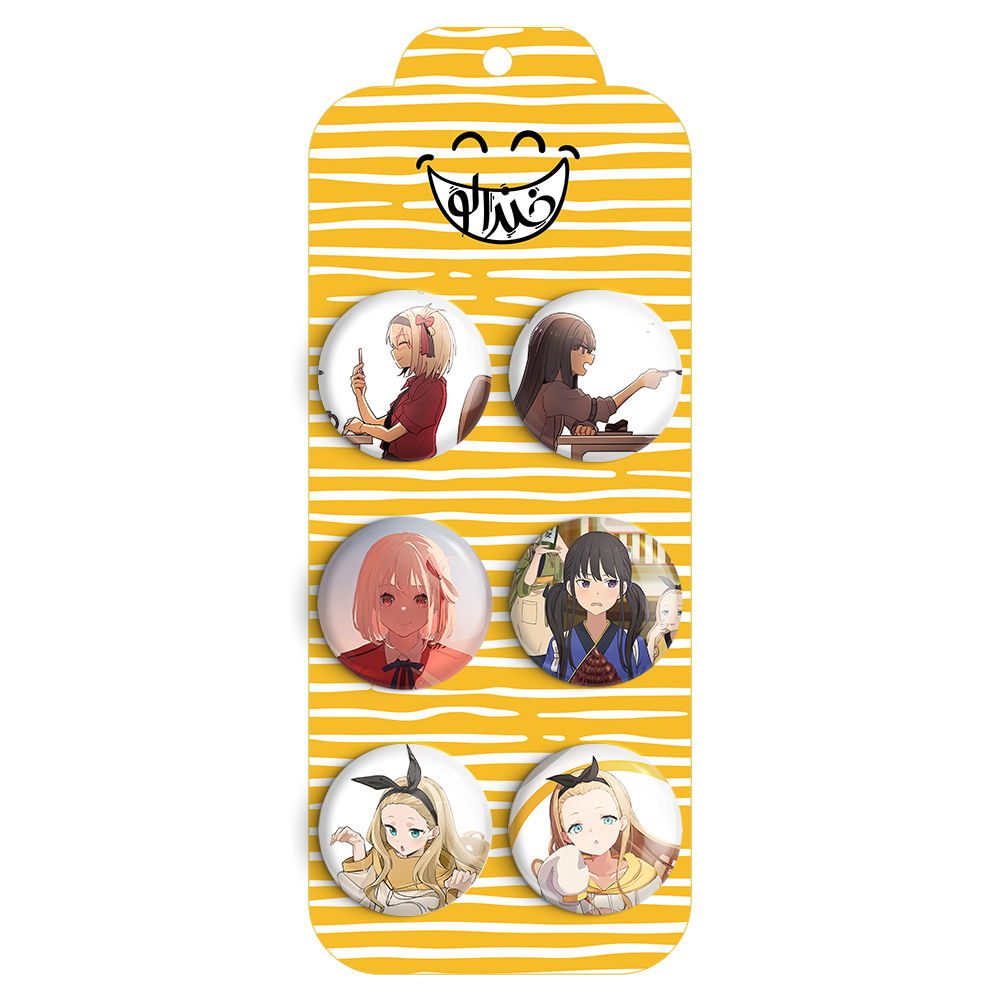 مجموعه 6 عددی پیکسل خندالو طرح انیمه لیکوریس ریکویل با روکش سلفون حرارتی براق ضدخش و قطعه پشتی رنگی تولید شده است. قطعات پشتی از میان 6 رنگ سفید، مشکی، صورتی، زرد، آبی و قرمز که با توجه به نوع و رنگبندی طرح روی پیکسل انتخاب شده اند تولید می شود و در هر بسته بندی مطابق عکس محصول می باشد. قطعات پلاستیکی پشت پیکسل با سوزن یک تکه ثابت و بدون لغزش و جا به جایی، ایستایی بسیار بهتری نسبت به پشتی فلزی پیکسل دارند که این مهم در تولید این محصول نیز رعایت شده است. چاپ پیکسل نیز با دستگاه های استاندارد و با بهترین سطح کیفی صورت گرفته و طرح با شفافیتی مثال زدنی و با سلفونی بدون شکست نور بر روی پیکسل نقش بسته است. همچنین بسته بندی جذاب و مینیمال پیکسل ها، آنها را مناسب هدیه کرده است..