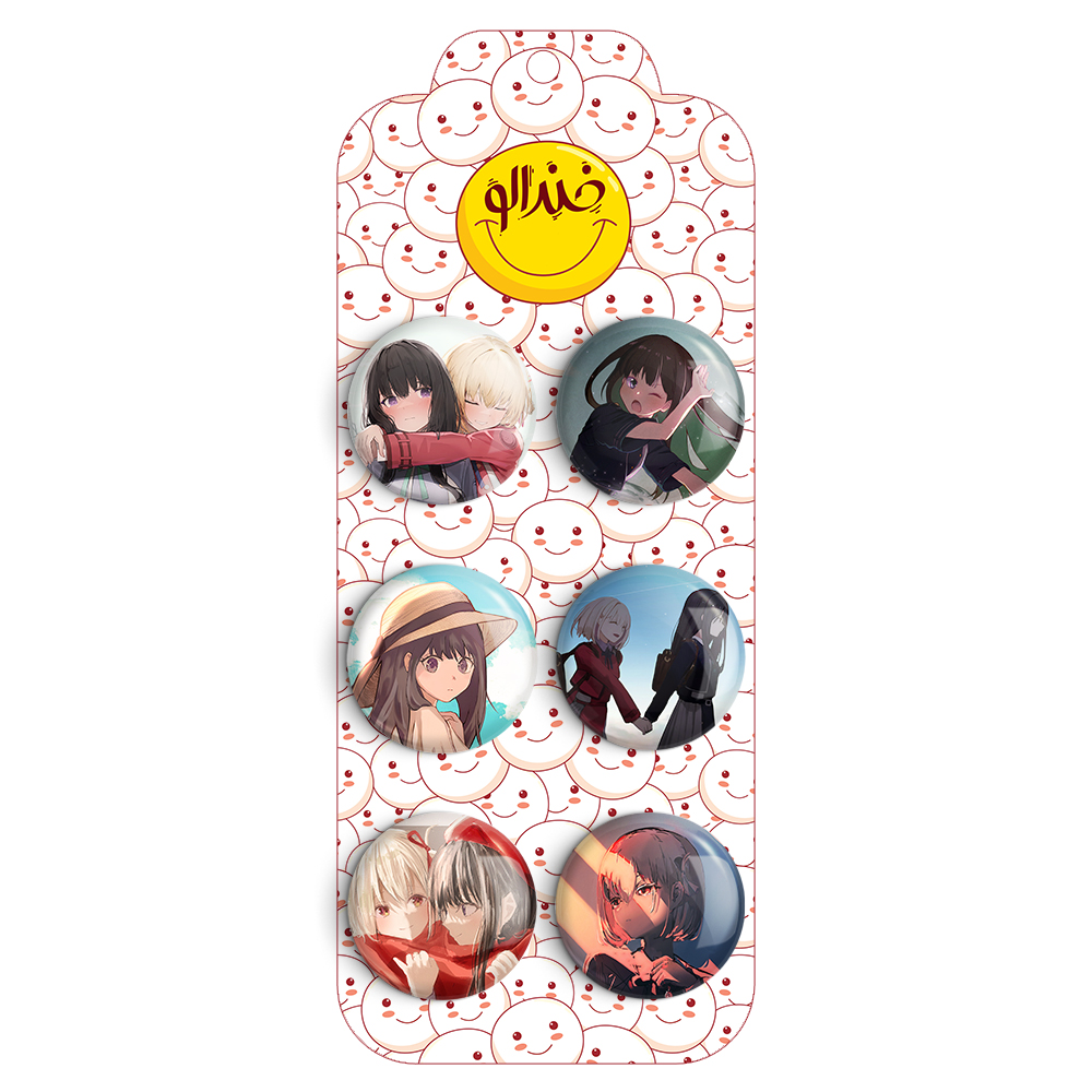 مجموعه 6 عددی پیکسل خندالو طرح انیمه لیکوریس ریکویل با روکش سلفون حرارتی براق ضدخش و قطعه پشتی رنگی تولید شده است. قطعات پشتی از میان 6 رنگ سفید، مشکی، صورتی، زرد، آبی و قرمز که با توجه به نوع و رنگبندی طرح روی پیکسل انتخاب شده اند تولید می شود و در هر بسته بندی مطابق عکس محصول می باشد.