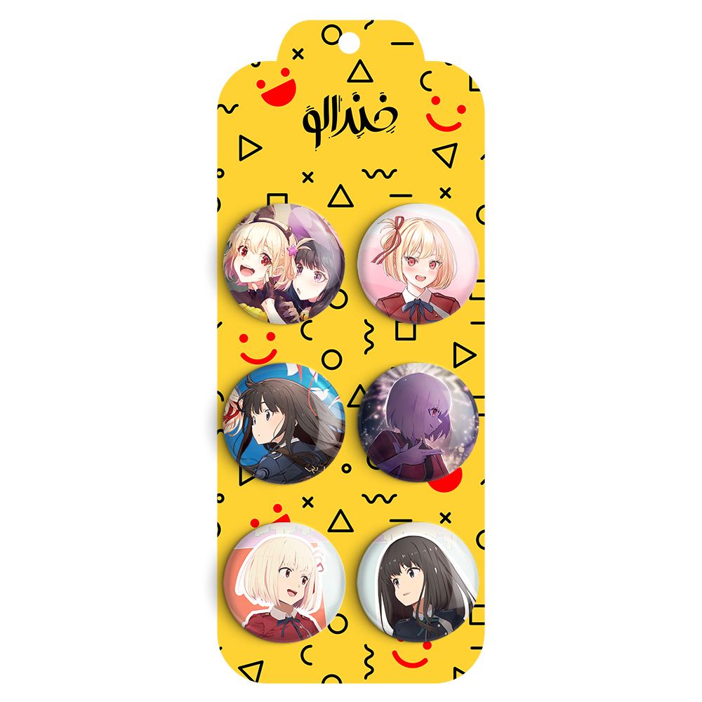 مجموعه 6 عددی پیکسل خندالو طرح انیمه لیکوریس ریکویل با روکش سلفون حرارتی براق ضدخش و قطعه پشتی رنگی تولید شده است. قطعات پشتی از میان 6 رنگ سفید، مشکی، صورتی، زرد، آبی و قرمز که با توجه به نوع و رنگبندی طرح روی پیکسل انتخاب شده اند تولید می شود و در هر بسته بندی مطابق عکس محصول می باشد.