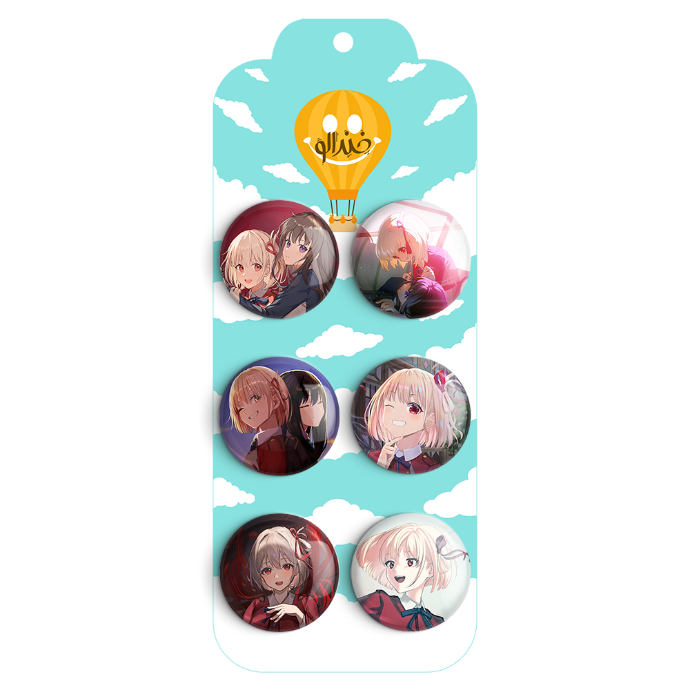 مجموعه 6 عددی پیکسل خندالو طرح انیمه لیکوریس ریکویل با روکش سلفون حرارتی براق ضدخش و قطعه پشتی رنگی تولید شده است. قطعات پشتی از میان 6 رنگ سفید، مشکی، صورتی، زرد، آبی و قرمز که با توجه به نوع و رنگبندی طرح روی پیکسل انتخاب شده اند تولید می شود و در هر بسته بندی مطابق عکس محصول می باشد.